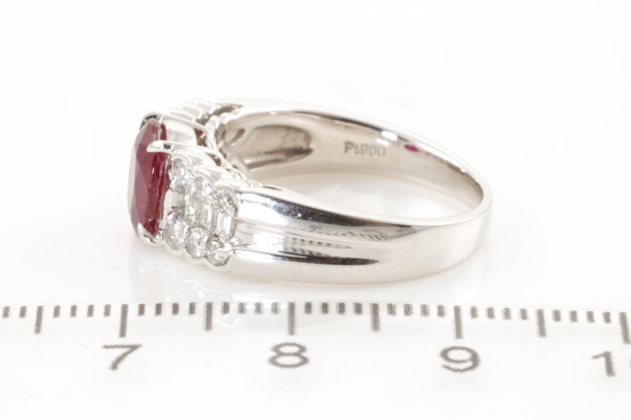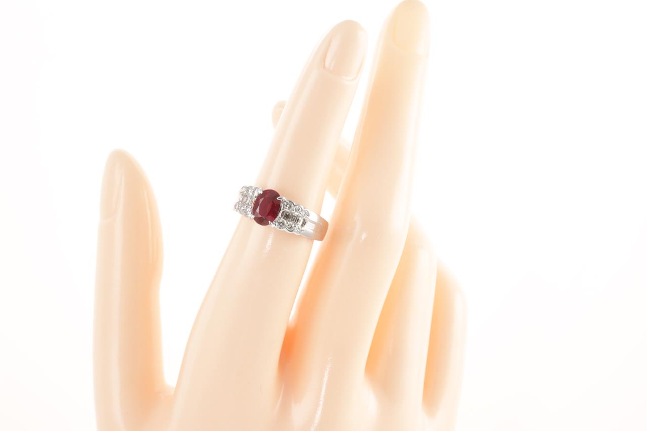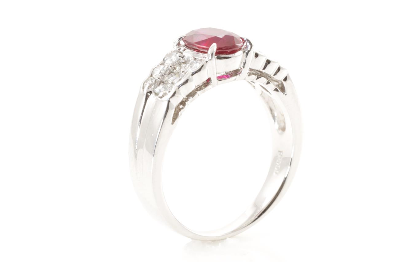 Ruby and Diamond ring with an oval Burmese Pigeon's Blood Ruby of 1.24ct (With GIA report #6335193307) and Diamonds totalling 0.49cts (Estimated grading: F-G VS-SI). Platinum. Ring size M. Weight: 7.8g. (Pre-owned)