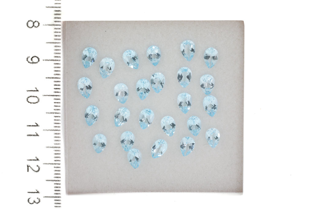 A loose parcel of approximate 25 pear shape blue topazes totalling 12.52ct. Measuring approximately 4.2 x 6mm. (As New)