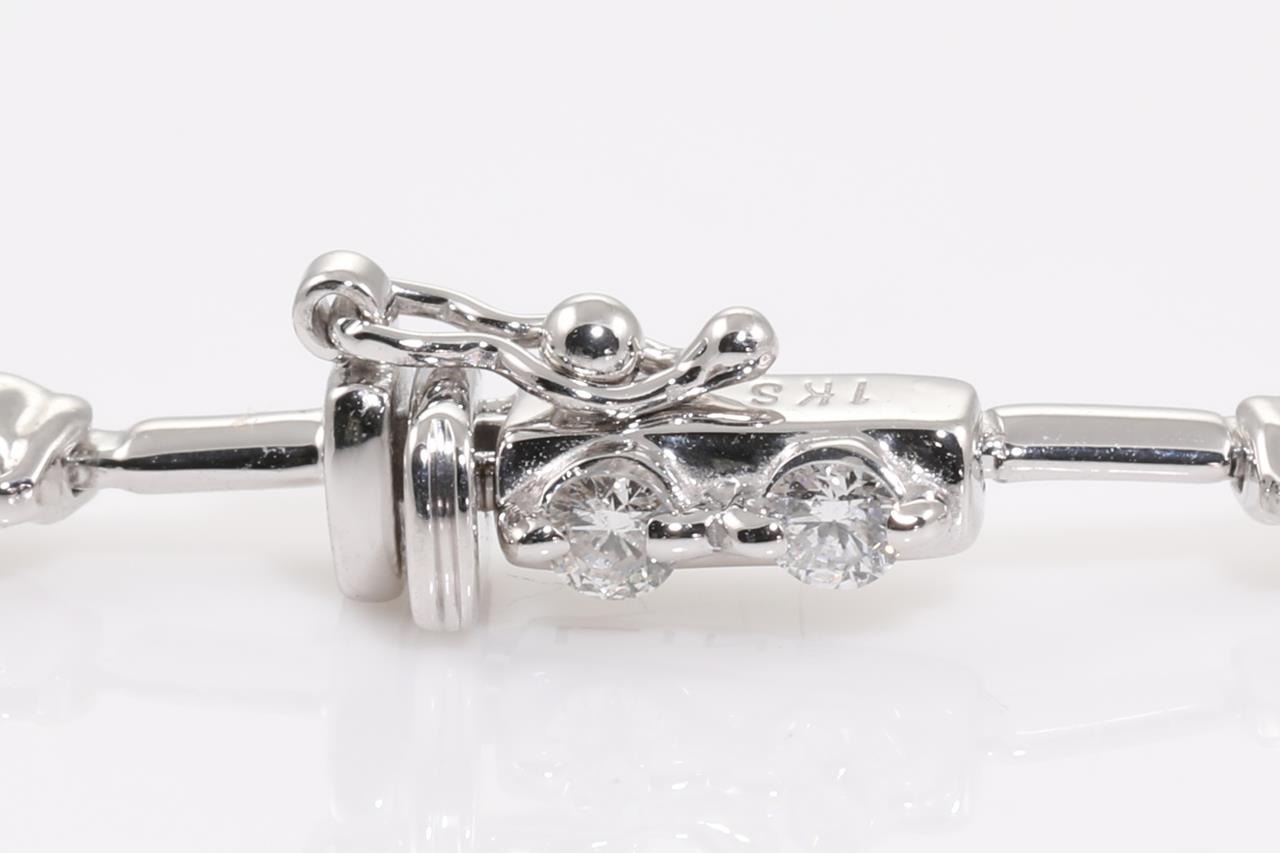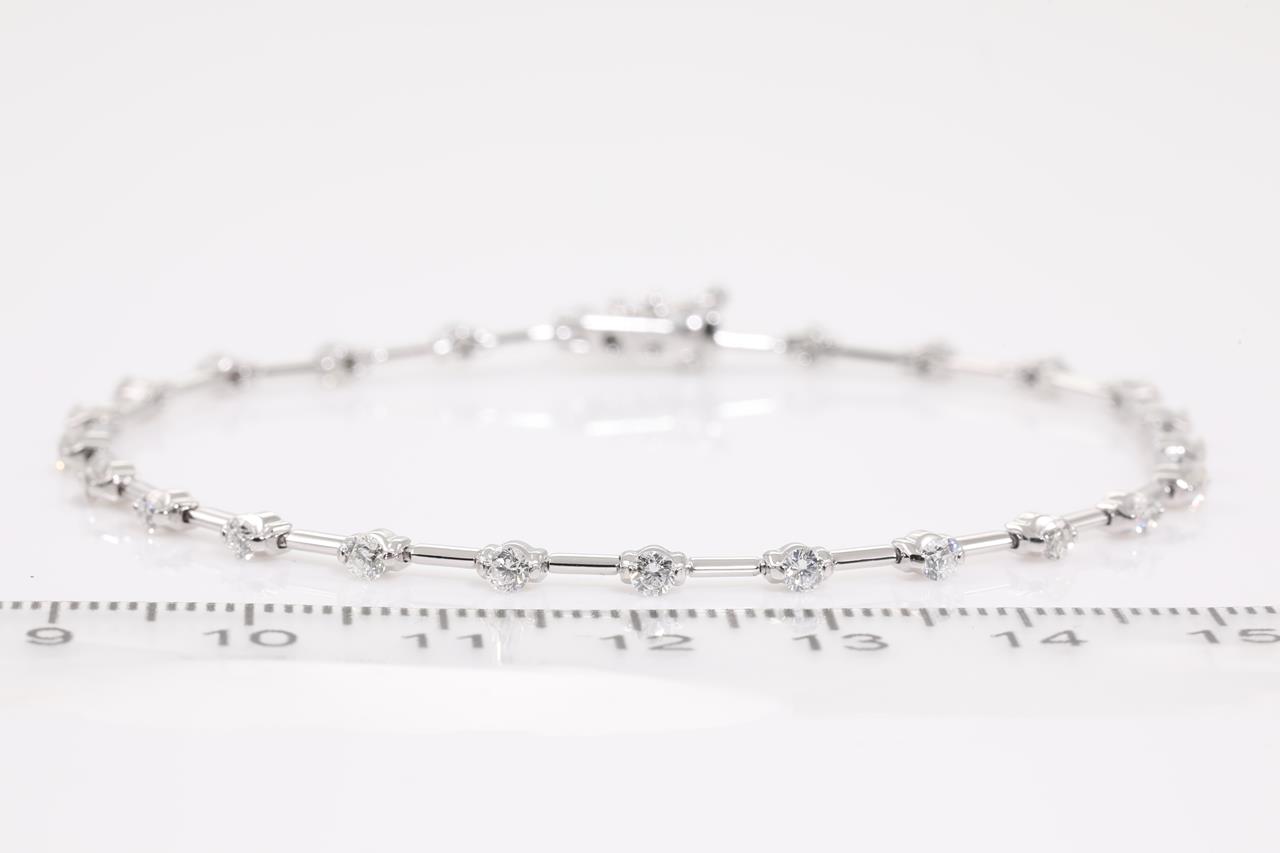 Diamond Bracelet with 25 round Diamonds totalling 1.25cts (Estimated grading: F SI-P1). 18ct white gold. Length: 18.5cm. Weight: 7.3g. (Pre-owned)