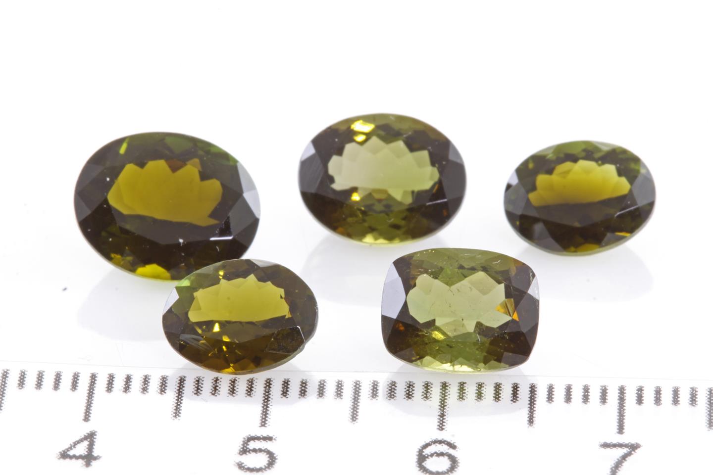 A loose parcel of mixed size oval & cushion cut olive colour Tourmalines totalling 12.88cts. (New)