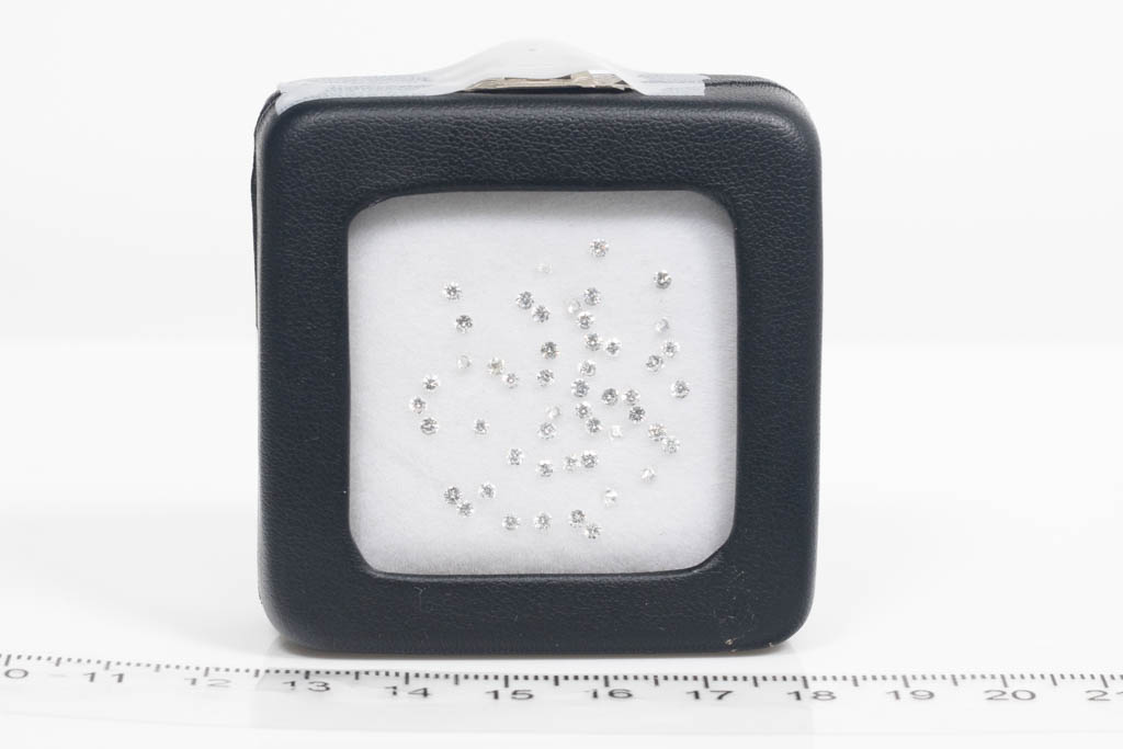 A loose parcel of 50 round brilliant cut Diamonds totalling 1.28cts (Estimated grading: H-I P1-P2; 1.8mm - 1.9mm). (New)