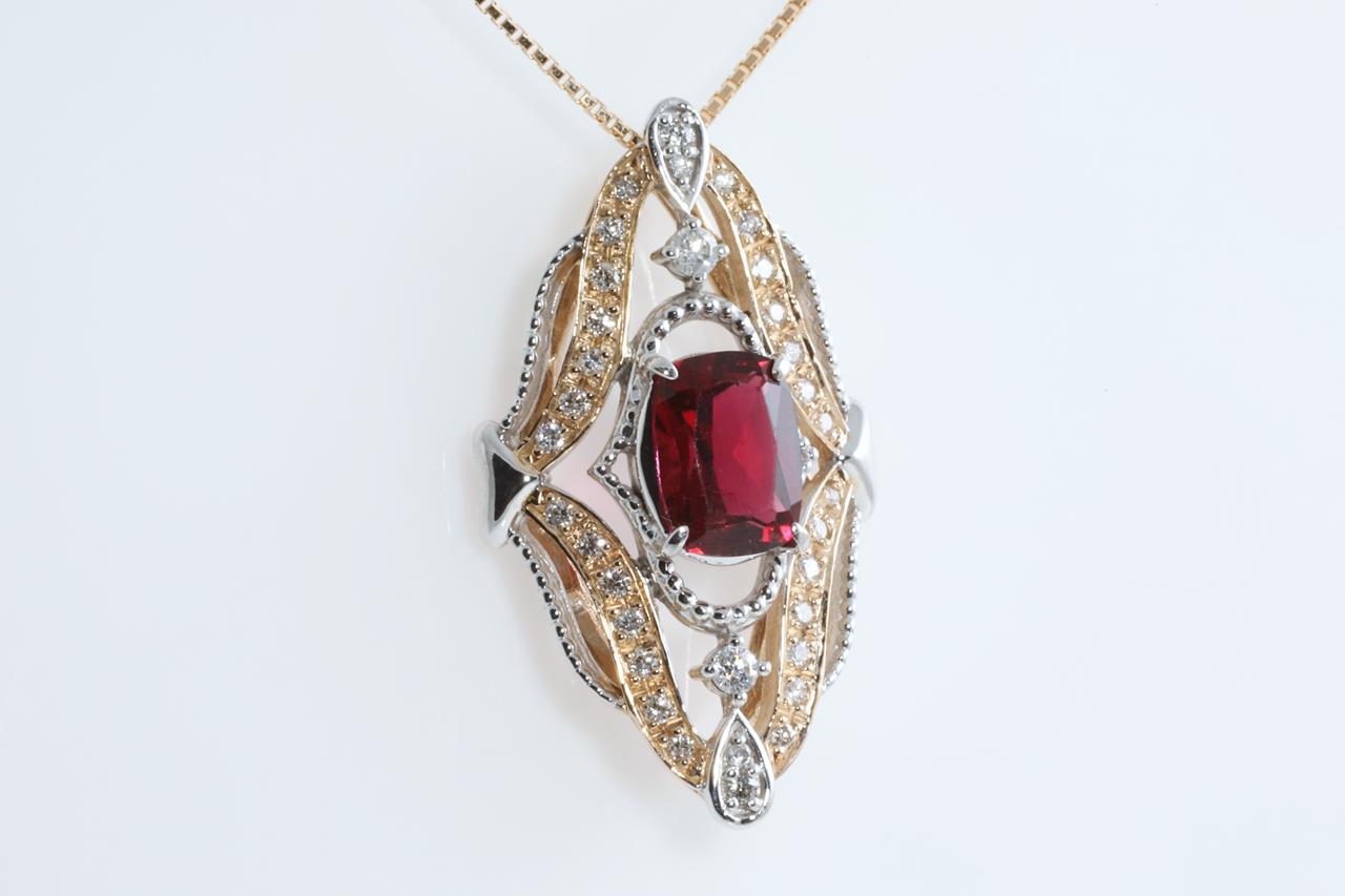 1.28ct Rubellite and Diamond Pendant