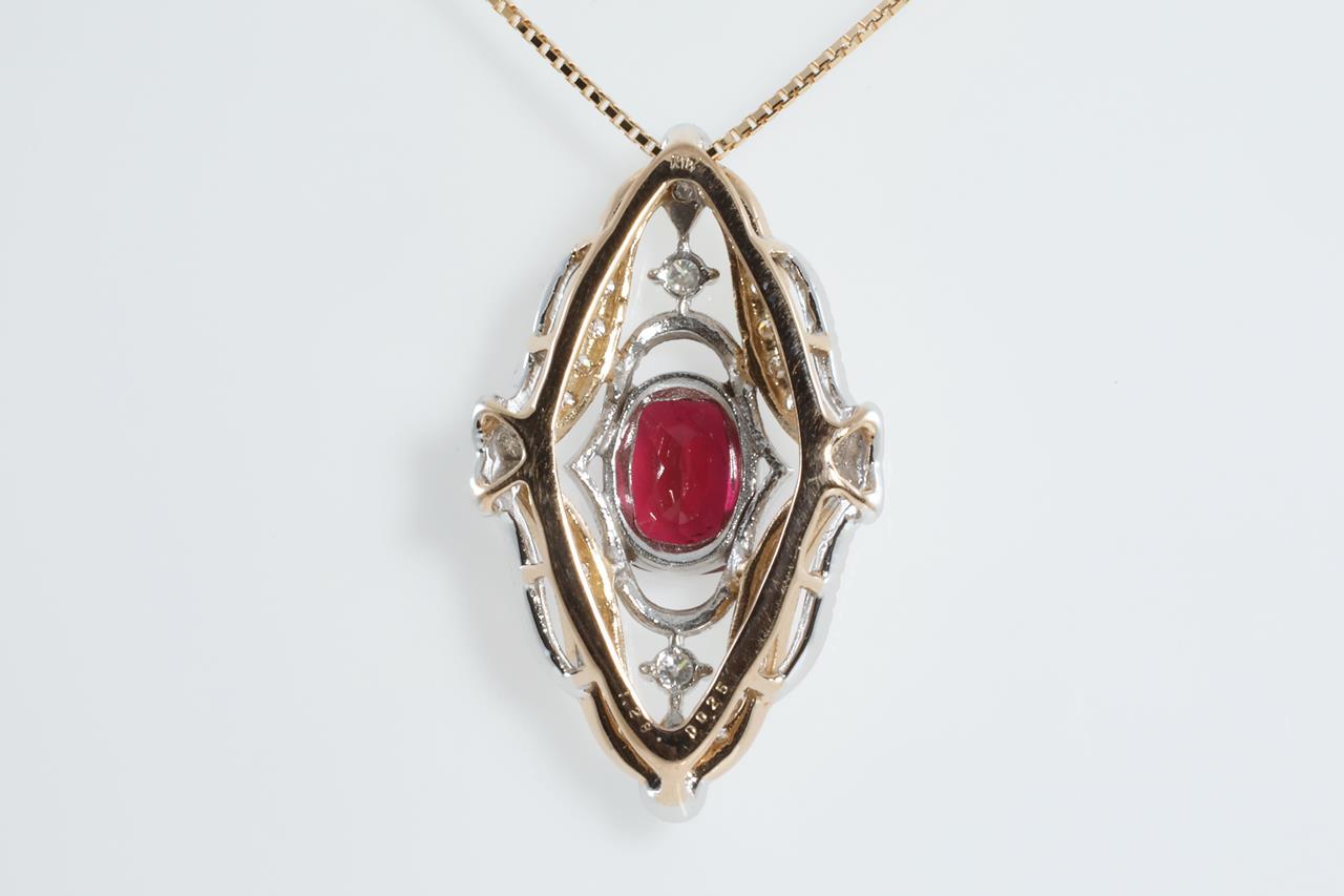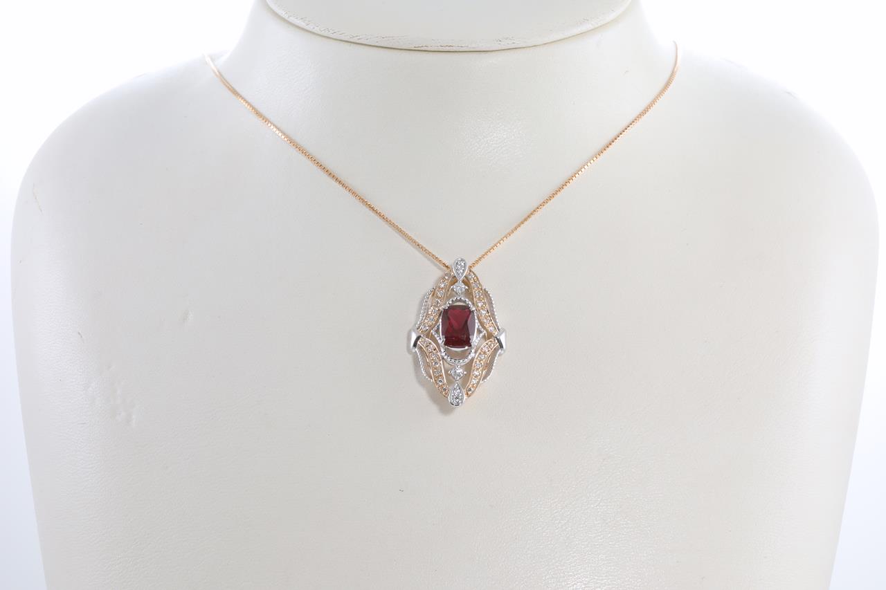 Rubellite and Diamond pendant with cushion cut Rubellite of 1.28ct and Diamonds totalling 0.25cts. 18ct Rose and white gold with 18ct rose gold 44cm adjustable chain. Weight: 6.0g (Pre-owned)
