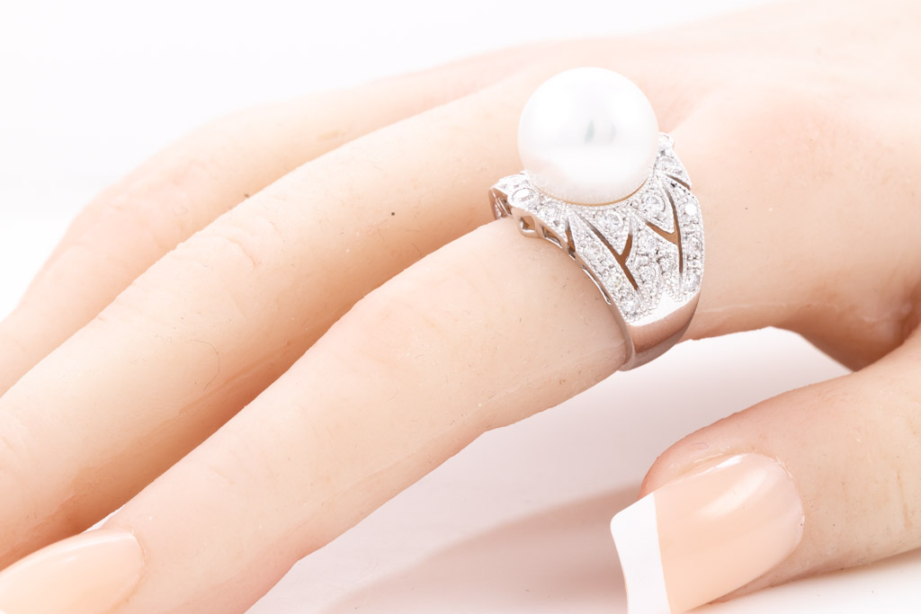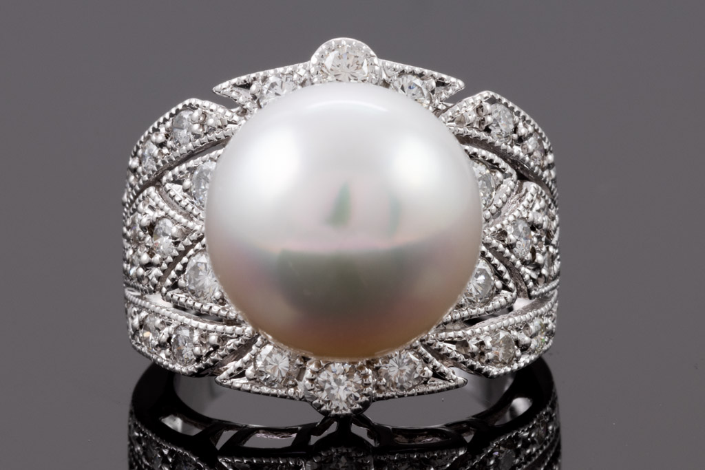 12.8mm Pearl and Diamond Ring
