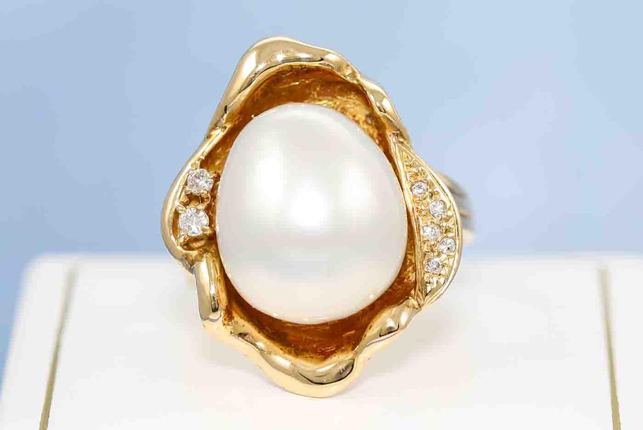 12.8mm South Sea Pearl & Diamond Ring | First State Auctions