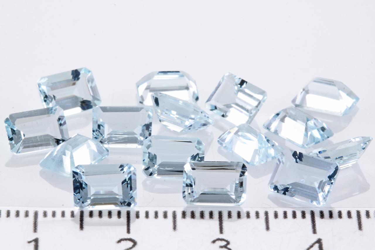 A loose parcel of 15 emerald cut Aquamarines totalling 12.94cts. Approximate size 7mm x 5mm. (New)