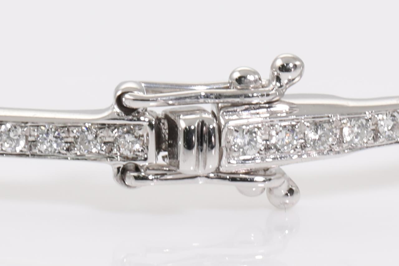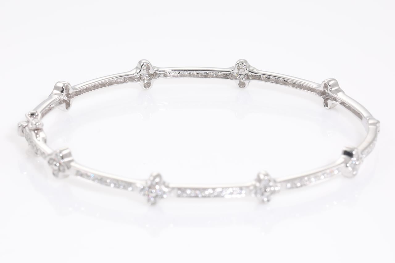 Diamond bangle with round Diamonds totalling 1.29cts (Estimated grading: H SI). 18ct white gold. Circumference 16.5cm Weight: 8.3g. (Pre-owned)
