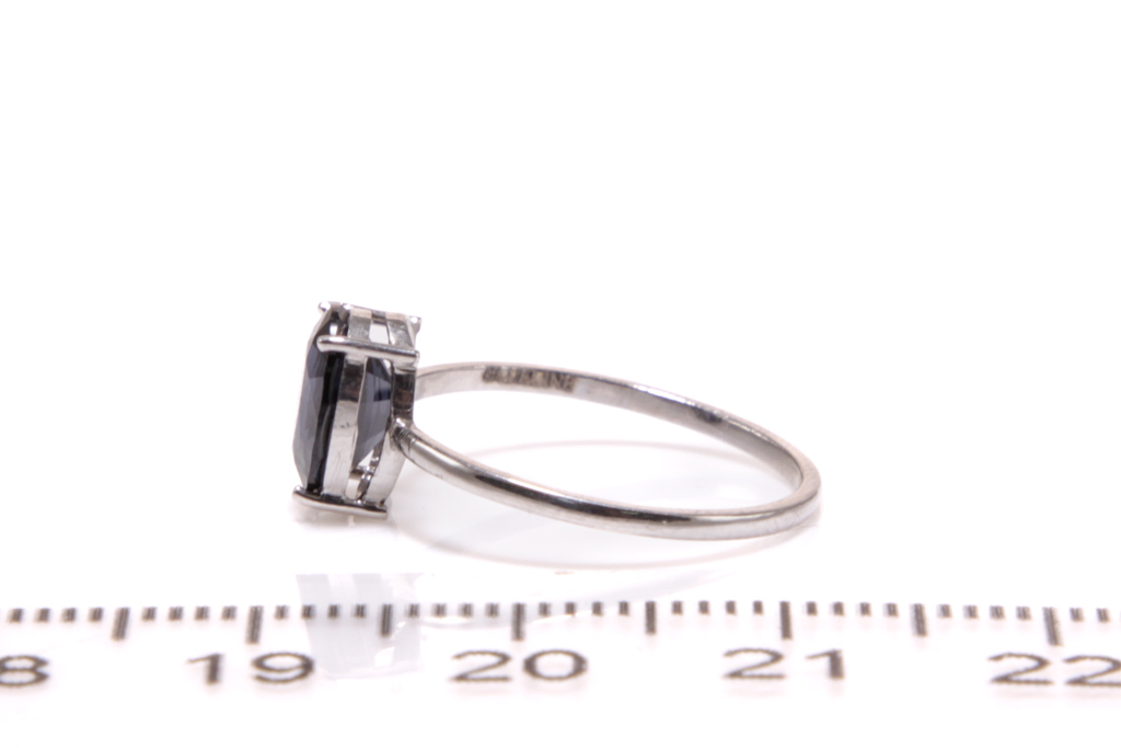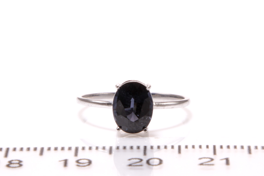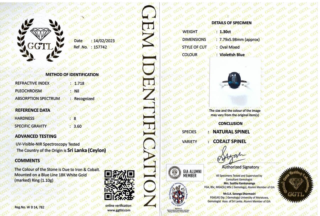 Spinel ring with an oval shape Ceylon violetish blue spinel of 1.30ct. 18ct white gold. Ring size I1/2 - ring resizing is not recommended. Weight: 1.1g. With certificate GGTL #157742. (As New)