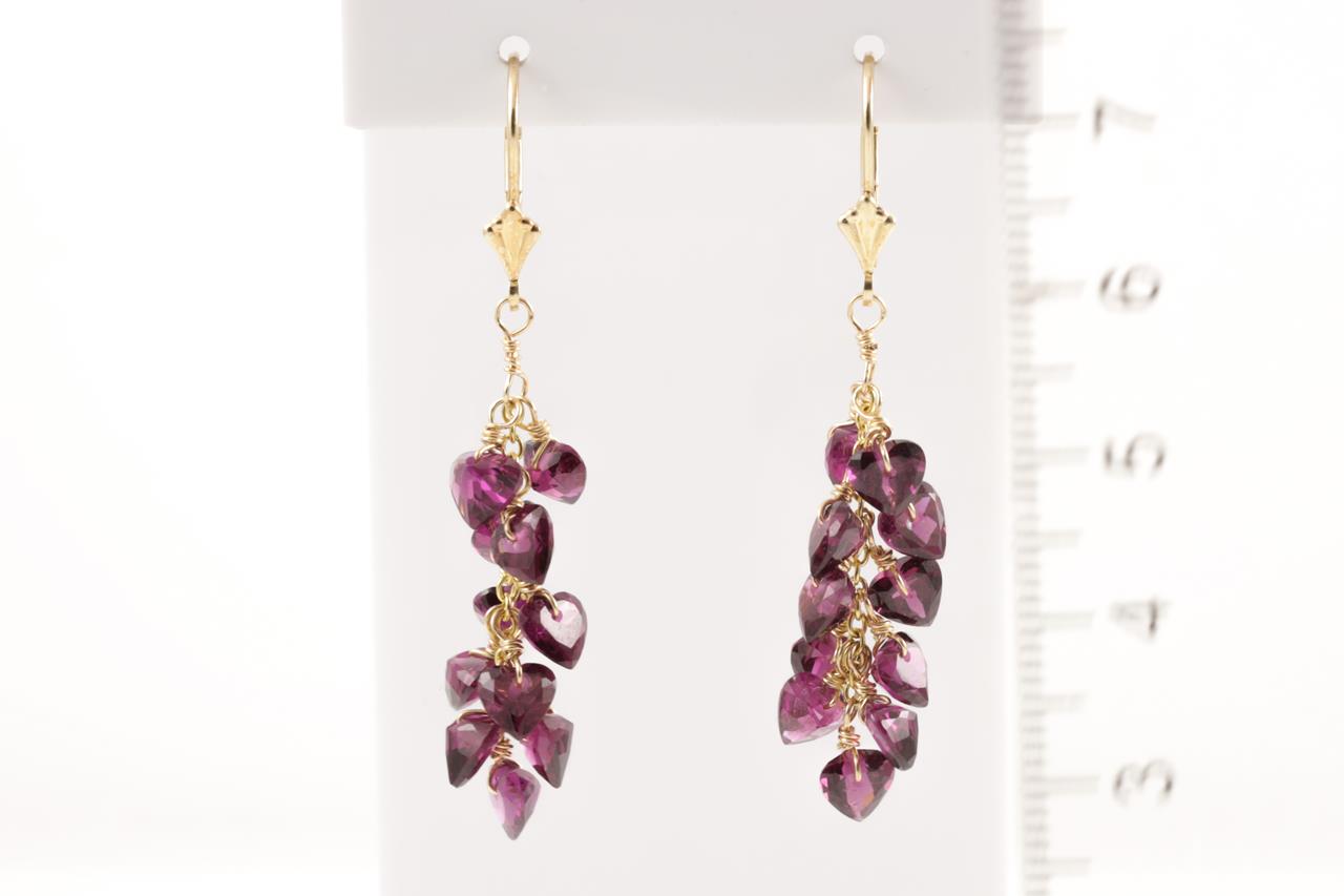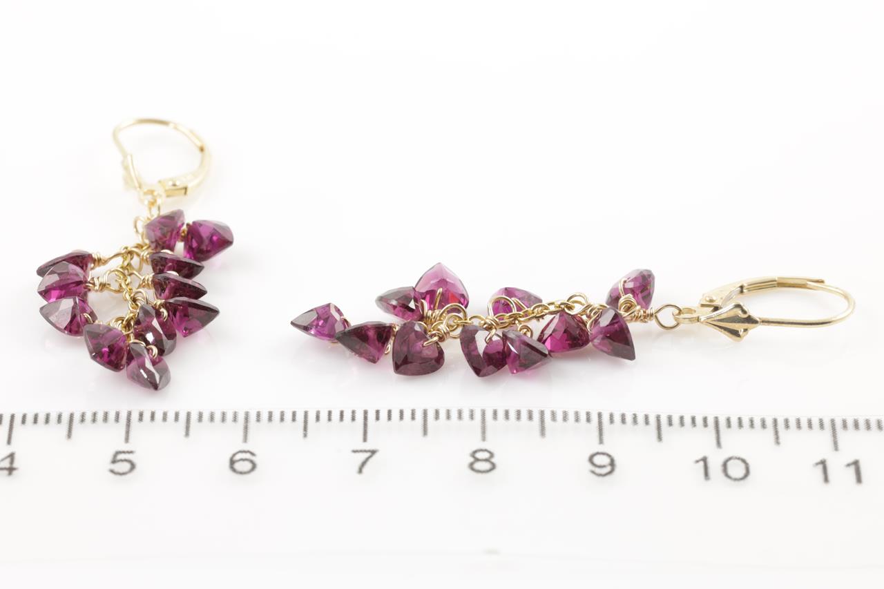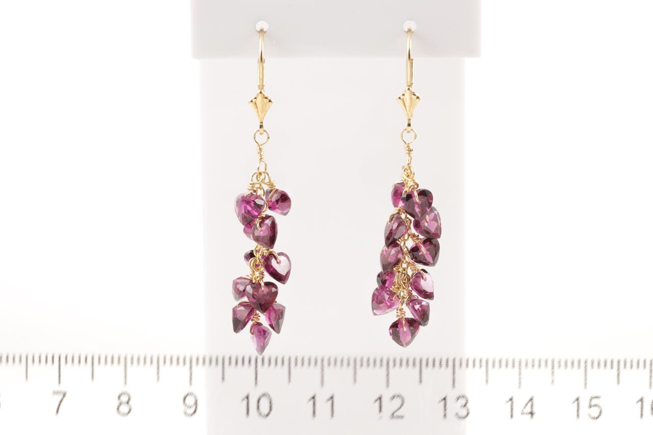 Garnet Leverback Earrings with heart shaped garnet totalling approximately 13.15cts. 14ct yellow gold. Weight 4.5g. (Pre-owned)