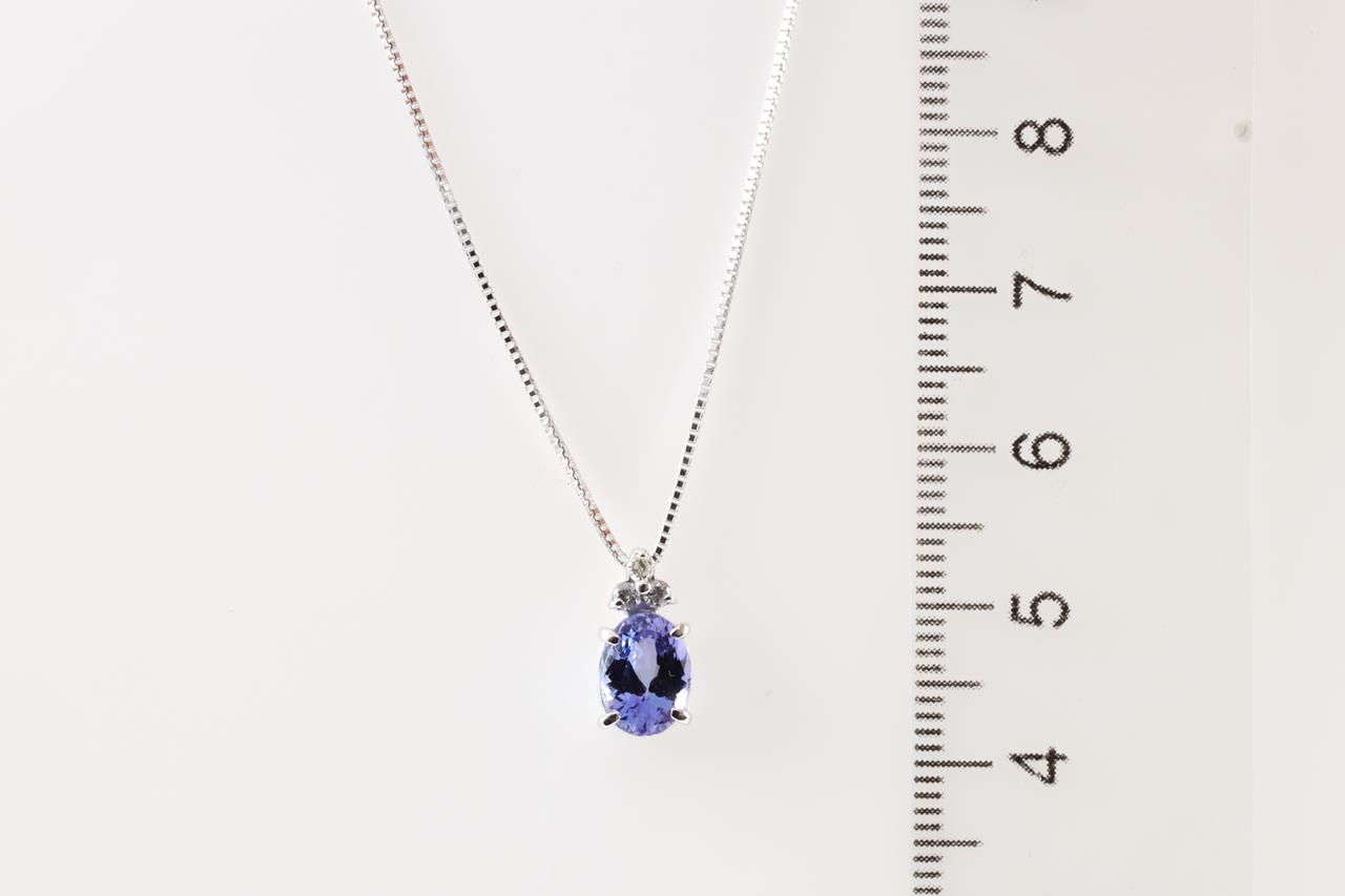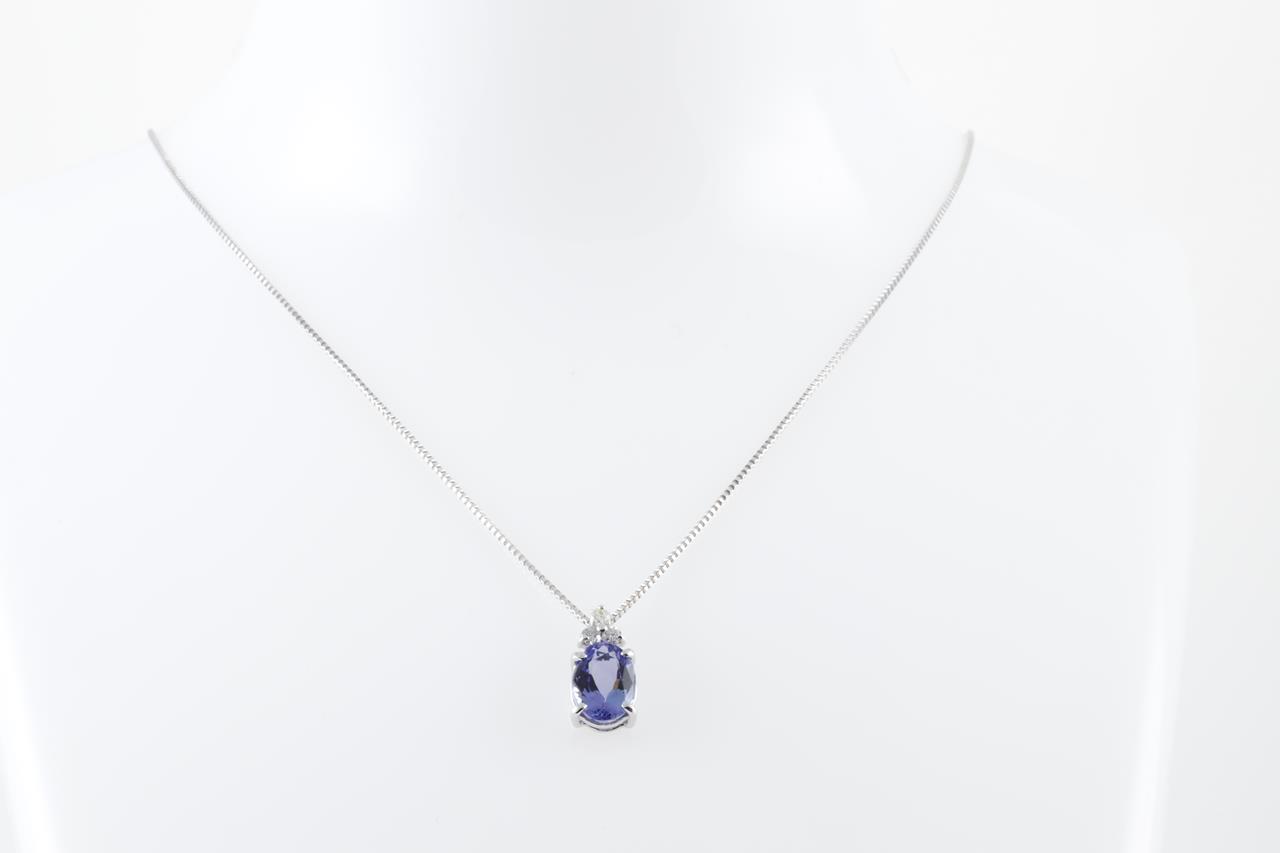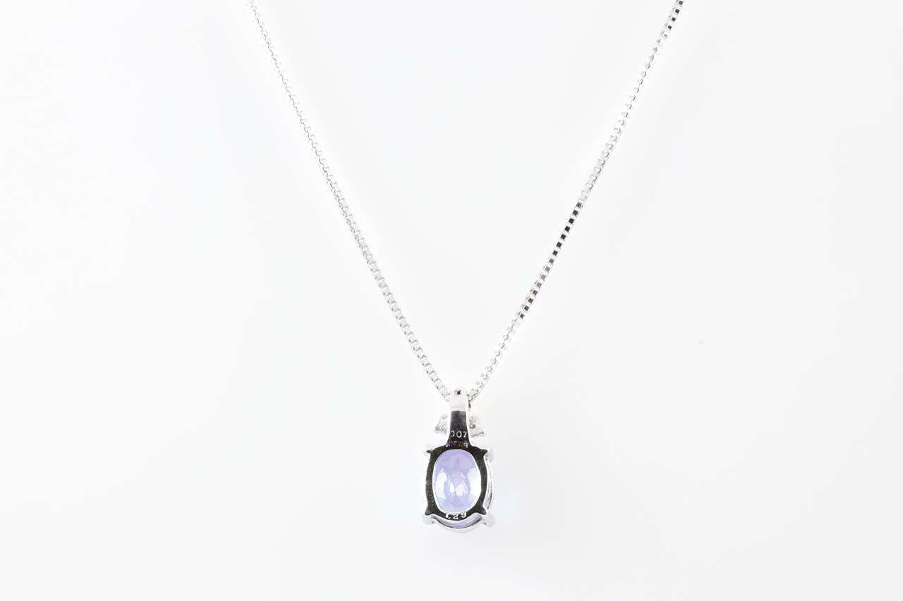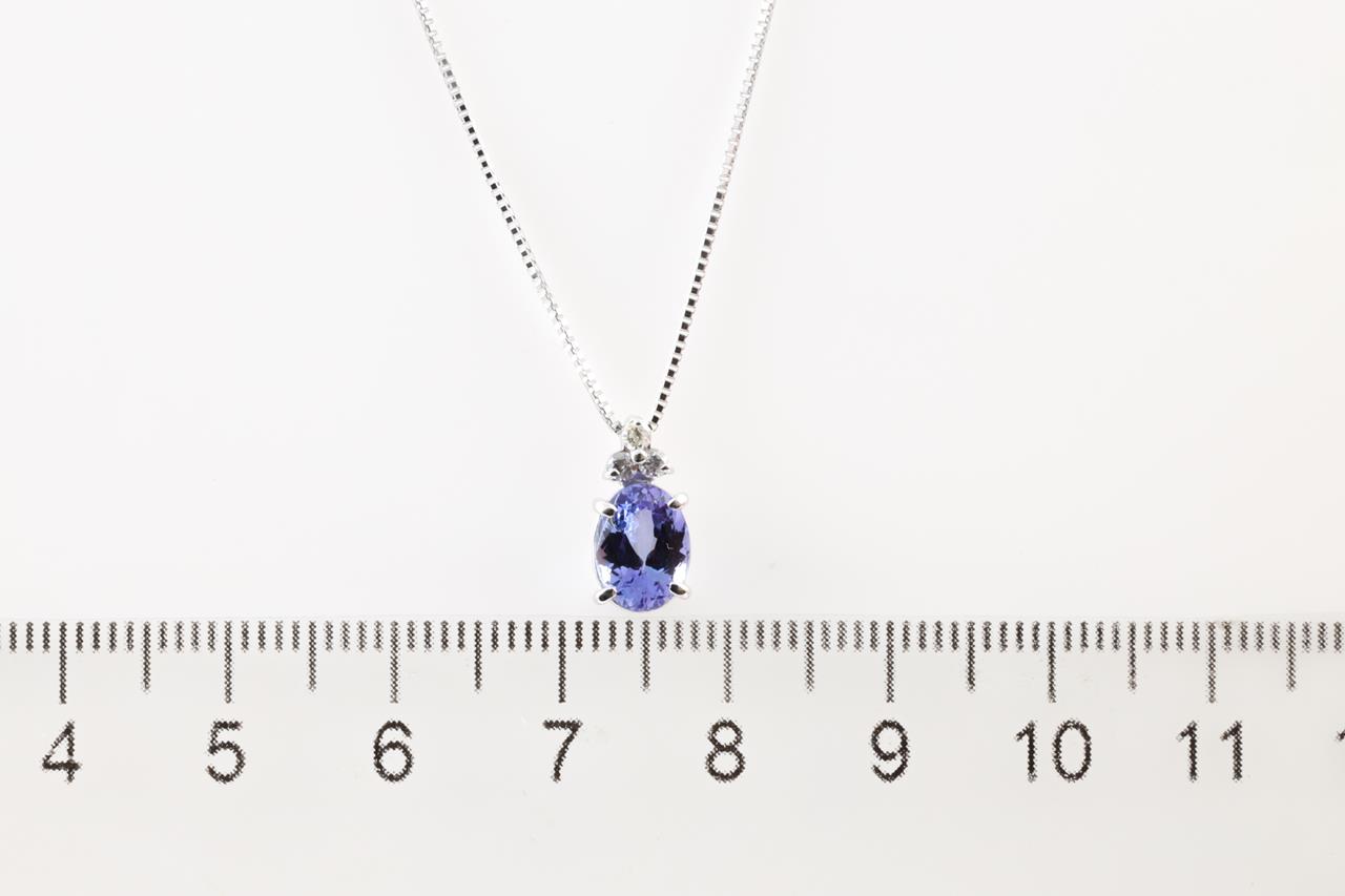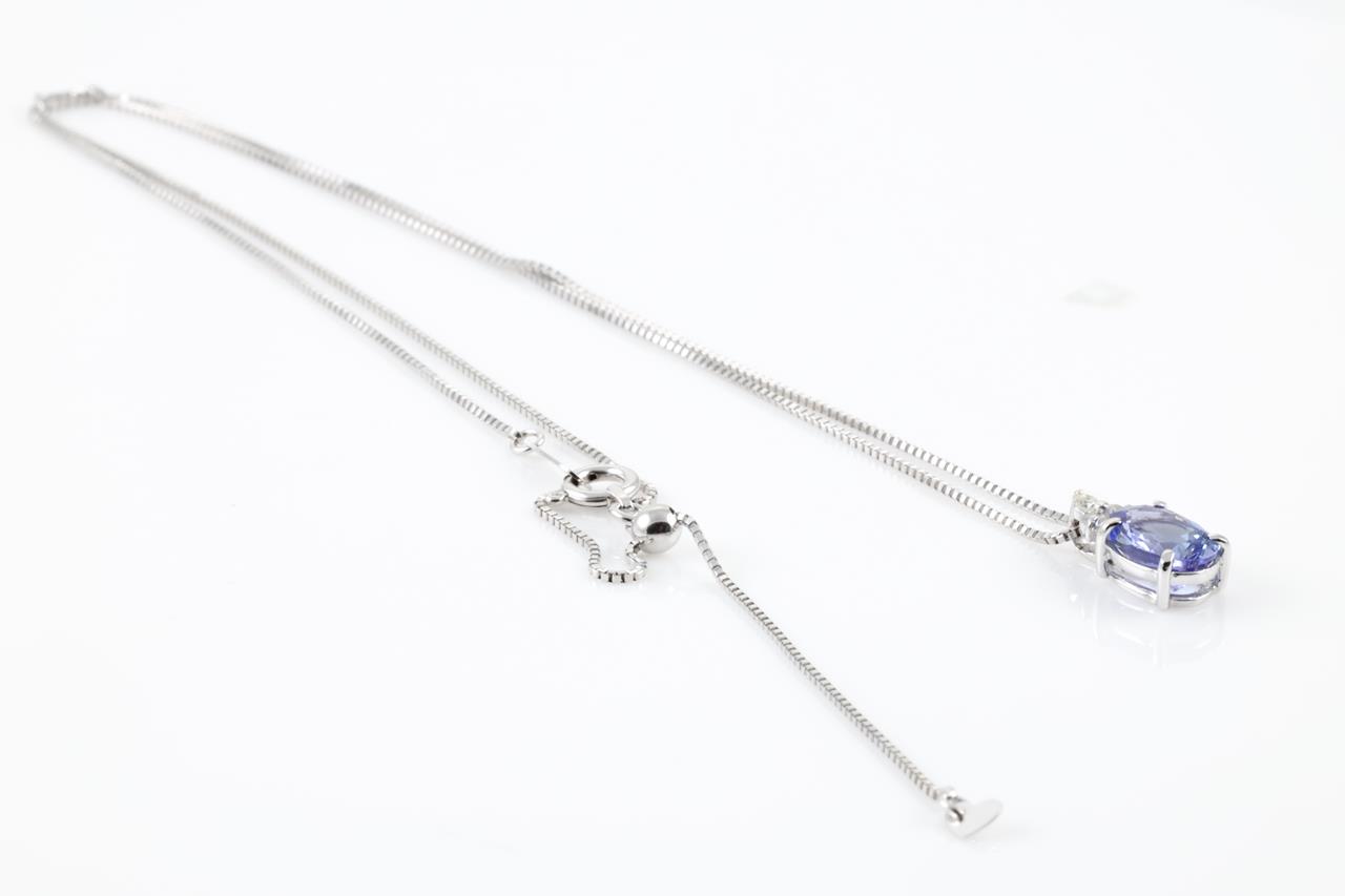 Tanzanite and Diamond pendant with an oval Tanzanite of approximately 1.31ct and Diamonds totalling 0.07cts. 18ct white gold with 45cm adjustable 18ct white gold chain. Weight: 2.7g. (New)