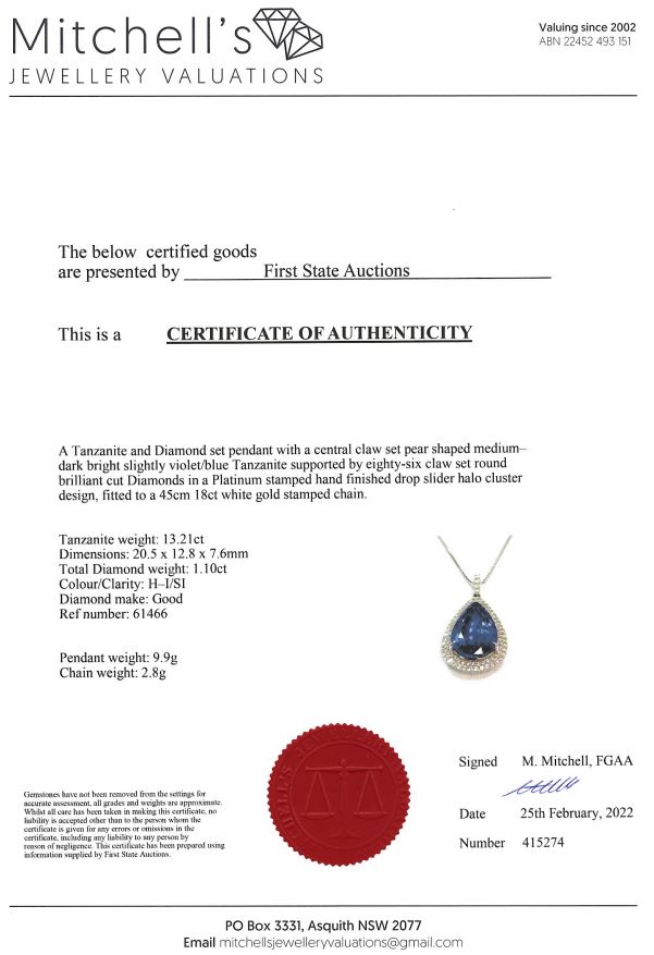 13.21ct Tanzanite and Diamond Pendant | First State Auctions