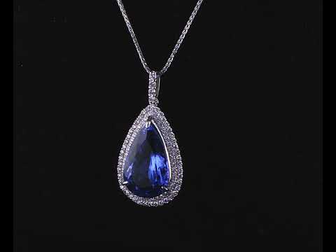 Tanzanite and Diamond Pendant with a pear shape Tanzanite of 13.21ct and round Diamonds totalling 1.10cts (Estimated grading: H-I SI). Platinum with 18ct white gold 44cm chain. Weight: 12.7g. With certificate #415274. (Pre-owned)