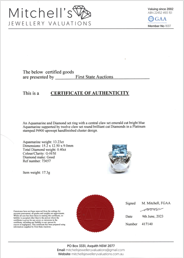 13.23ct Aquamarine and Diamond Ring | First State Auctions