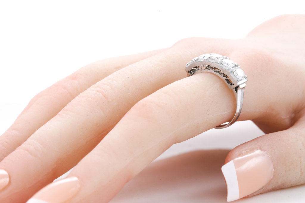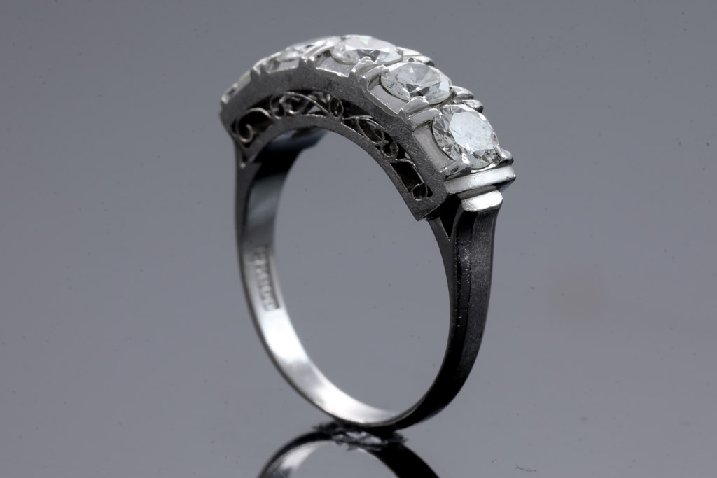 Diamond eternity ring with 5 round Diamonds totalling 1.32cts (Estimated grading: H-I VS-SI). Platinum. Ring size M1/2. Weight: 6.9g. (Pre-owned)
