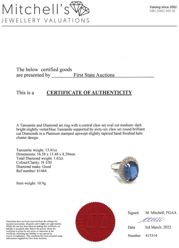 13.41ct Tanzanite and Diamond Ring | First State Auctions