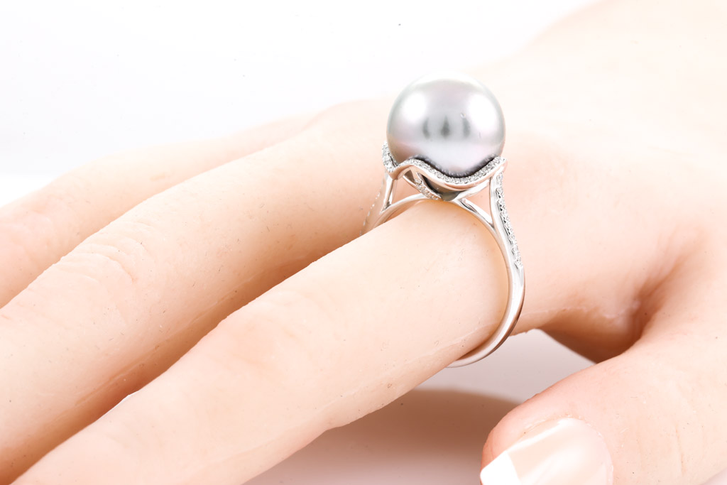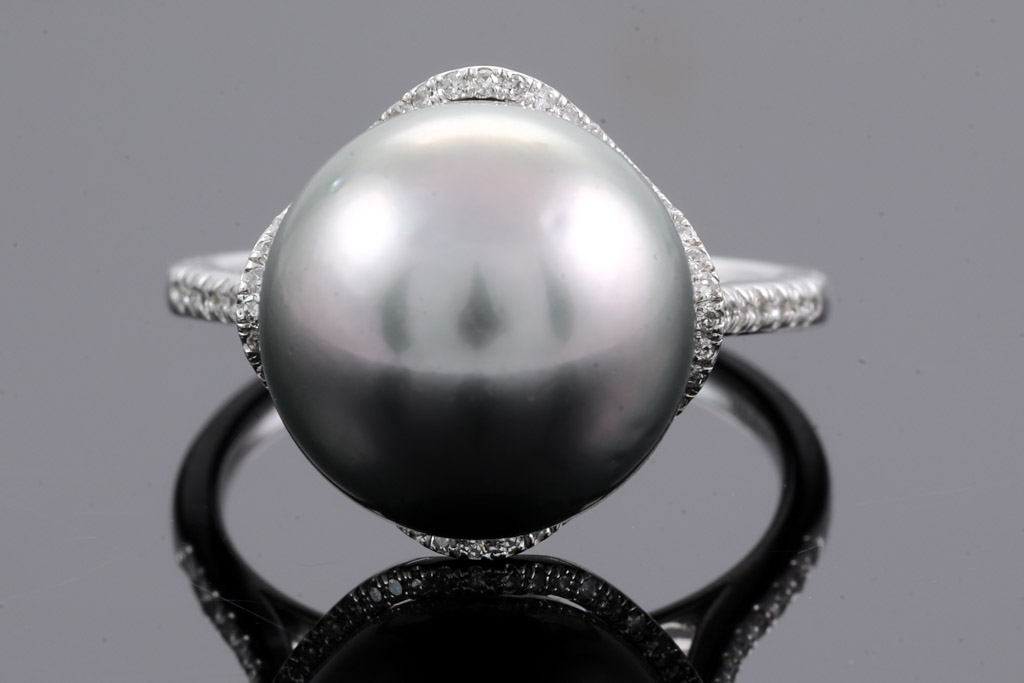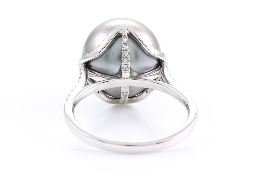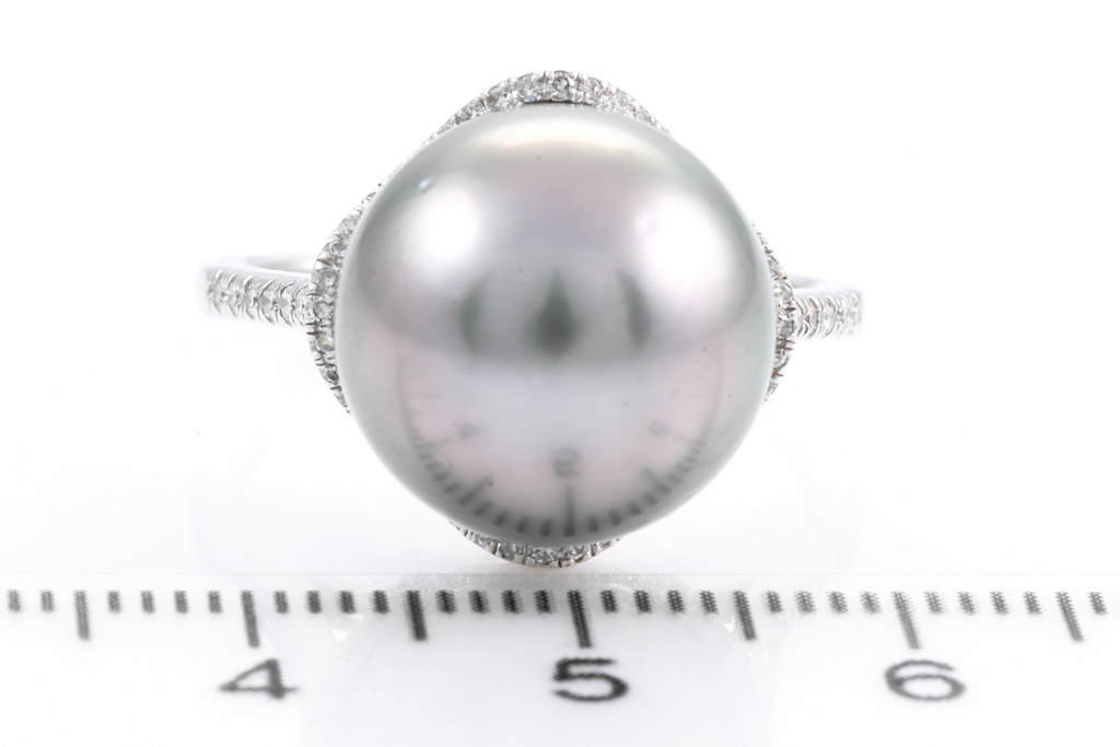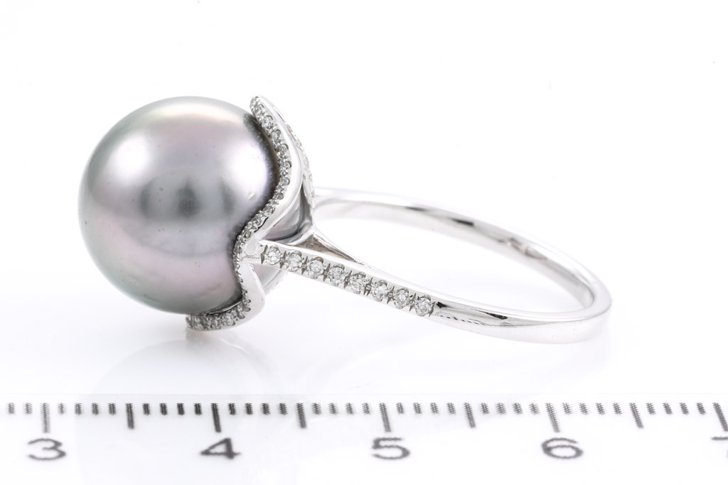13.4mm Tahitian Pearl and Diamond Ring