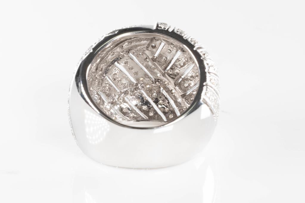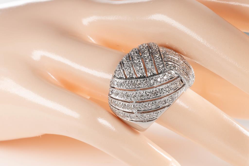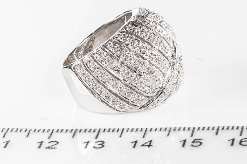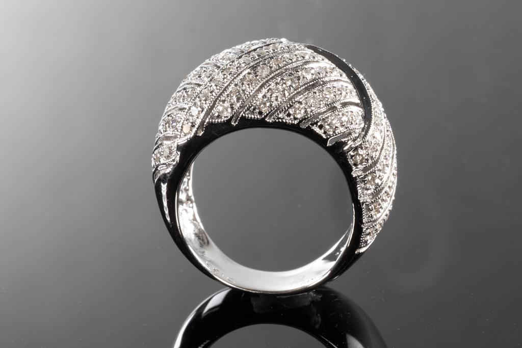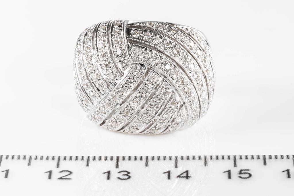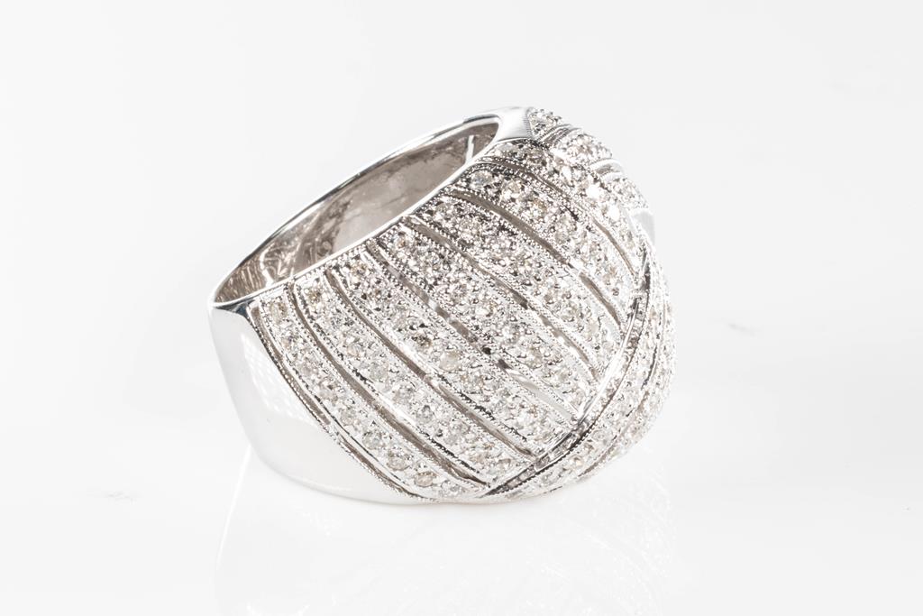 Diamond dress ring with round Diamonds totalling 1.35cts (Estimated grading: H-J SI-P1). 18ct white gold. Ring size: O - ring resizing is not recommended. Weight: 17.0g (Pre-owned)