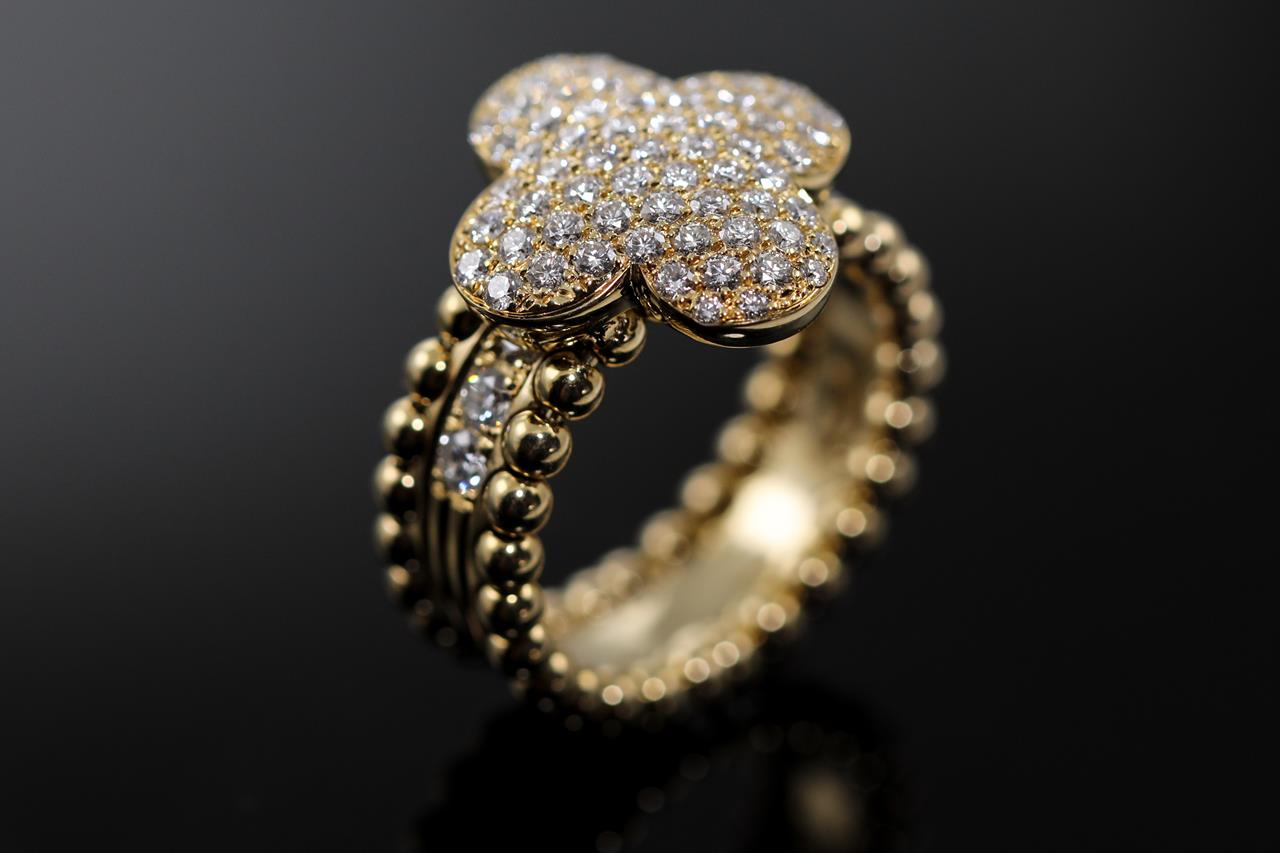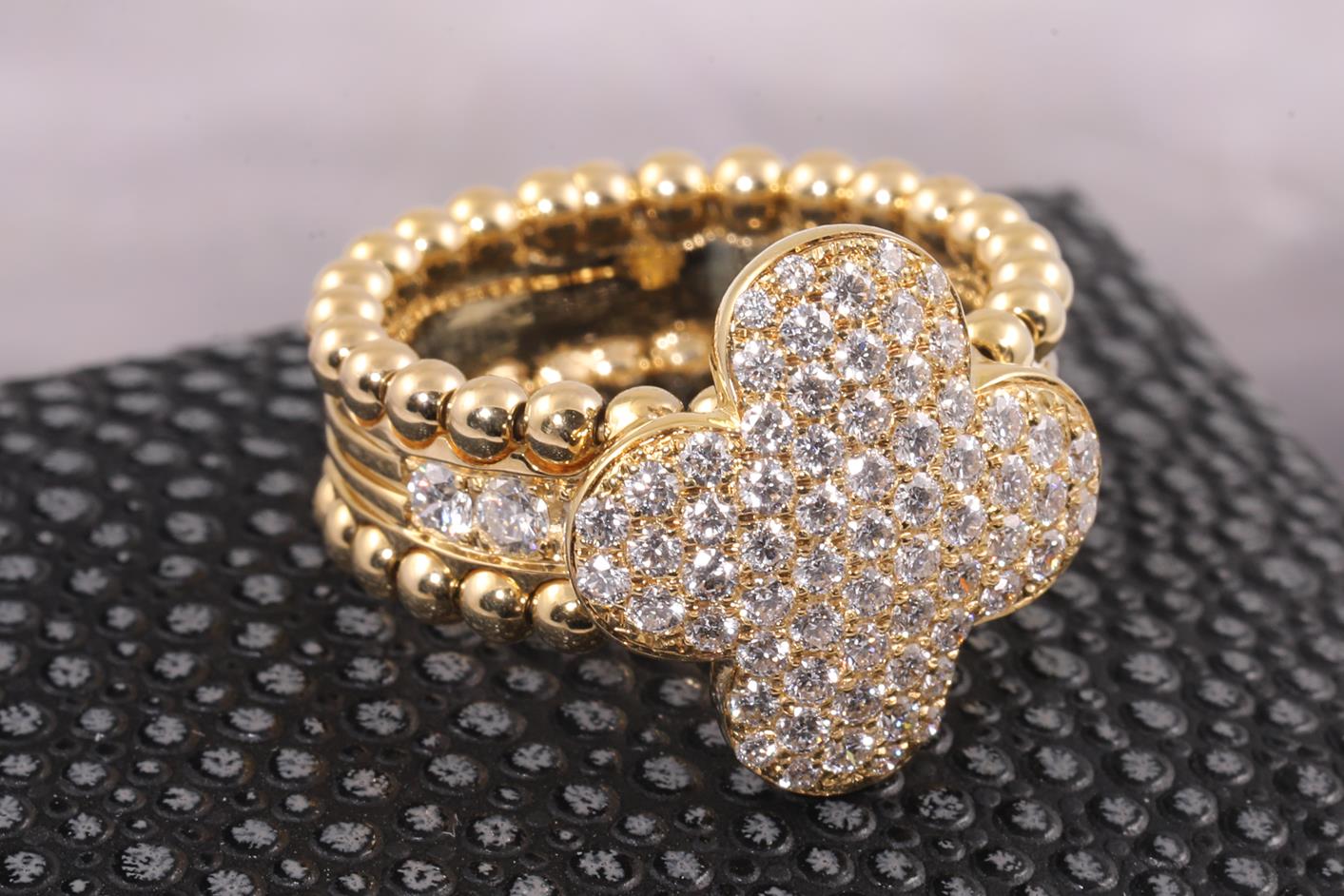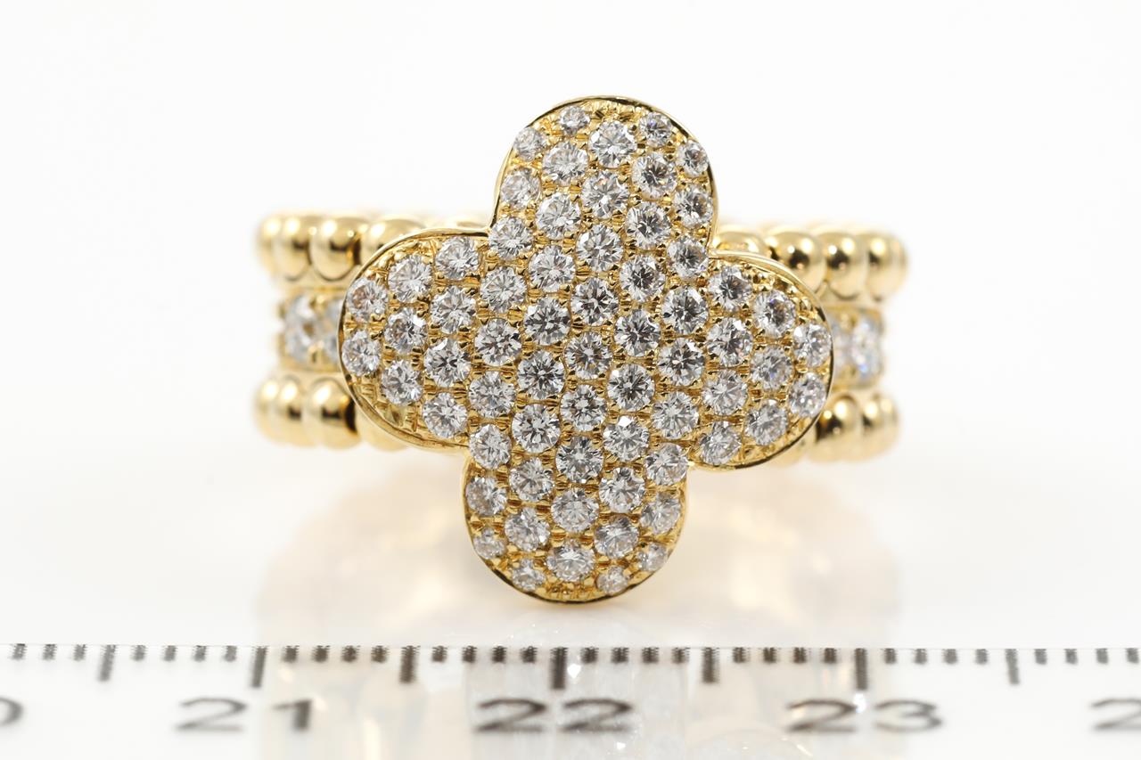 Diamond ring with round Diamonds totalling approximately 1.35cts (Estimated grading G-H VS). 18ct yellow gold. Ring size N1/2. Weight 9.9g. (As New)