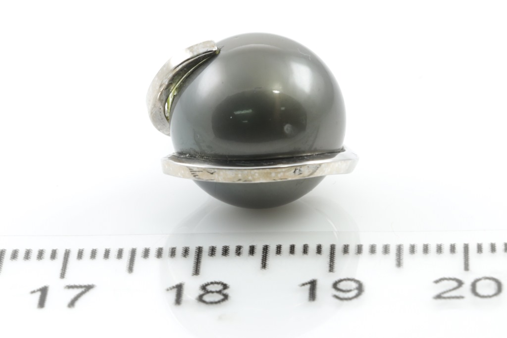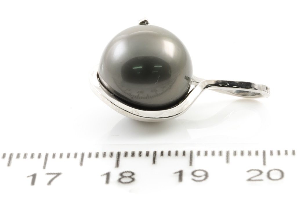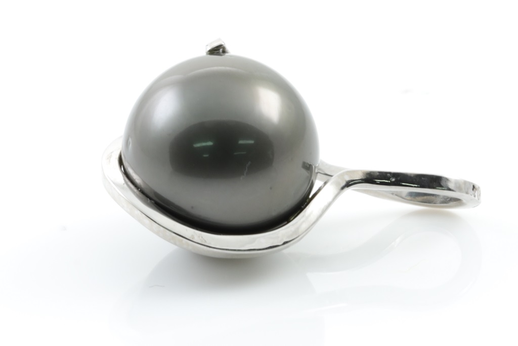 Pearl Pendant with round Tahitian Pearl of 13.5mm. 14ct white gold with no chain provided. Weight 5.5g. (As New)