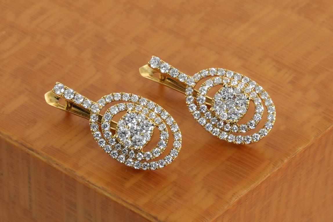 Diamond dress earrings with Diamonds totalling 1.36cts (Estimated grading: H VS-SI). 18ct yellow & white gold. Weight 4.3g. (Pre-owned)