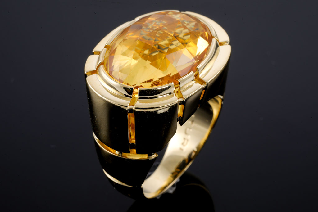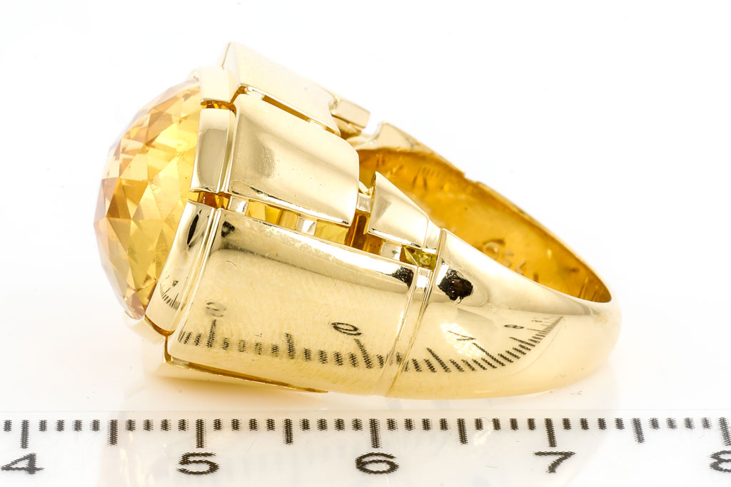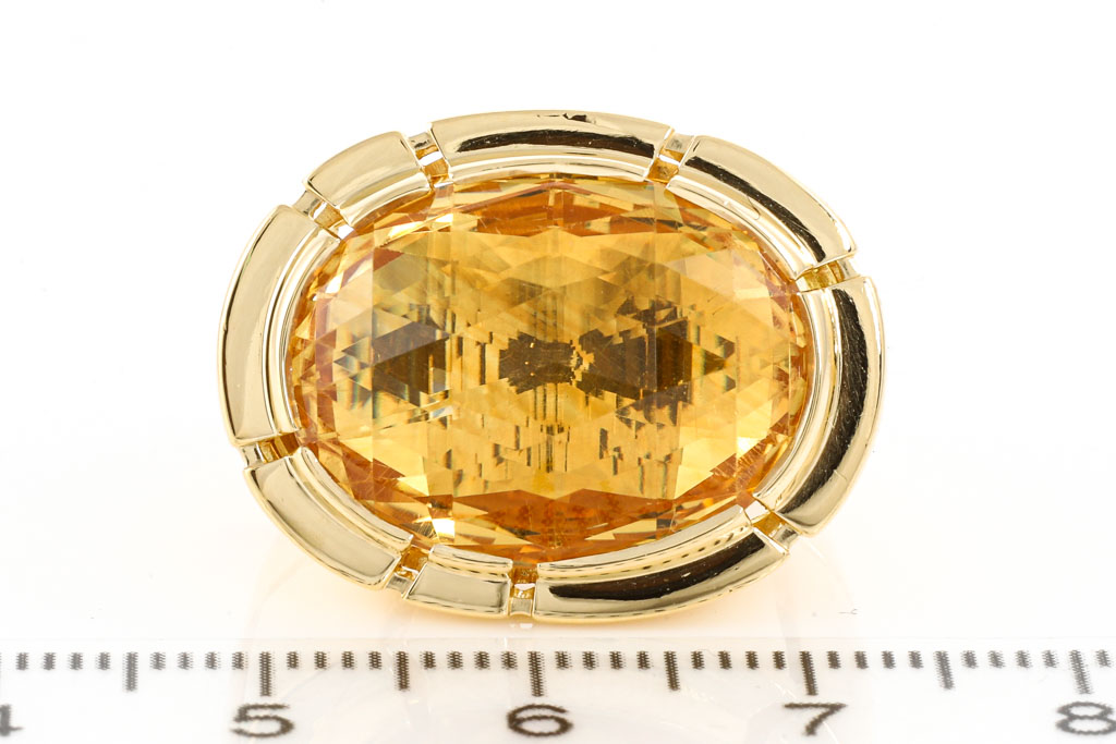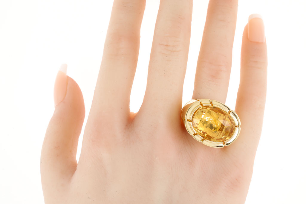 Canturi Citrine ring with oval shape Citrine of approximately 14.05ct. 18ct yellow gold. Ring size R - ring resizing is not recommended. Weight: 25.9g. (Pre-owned)