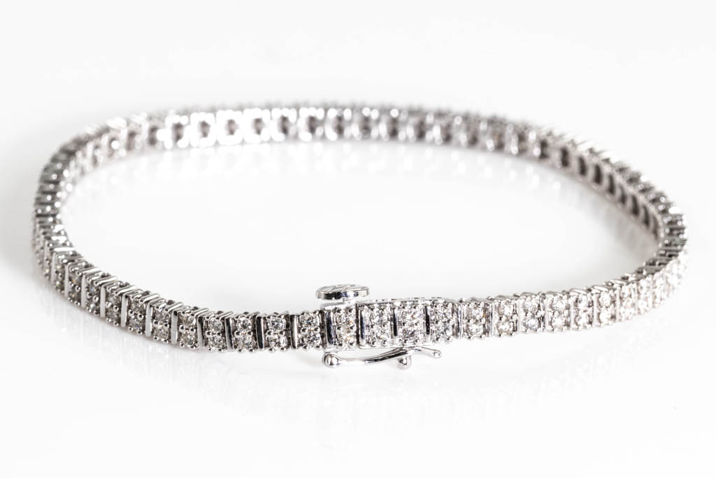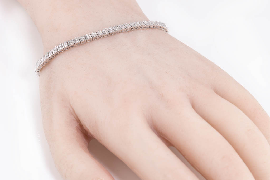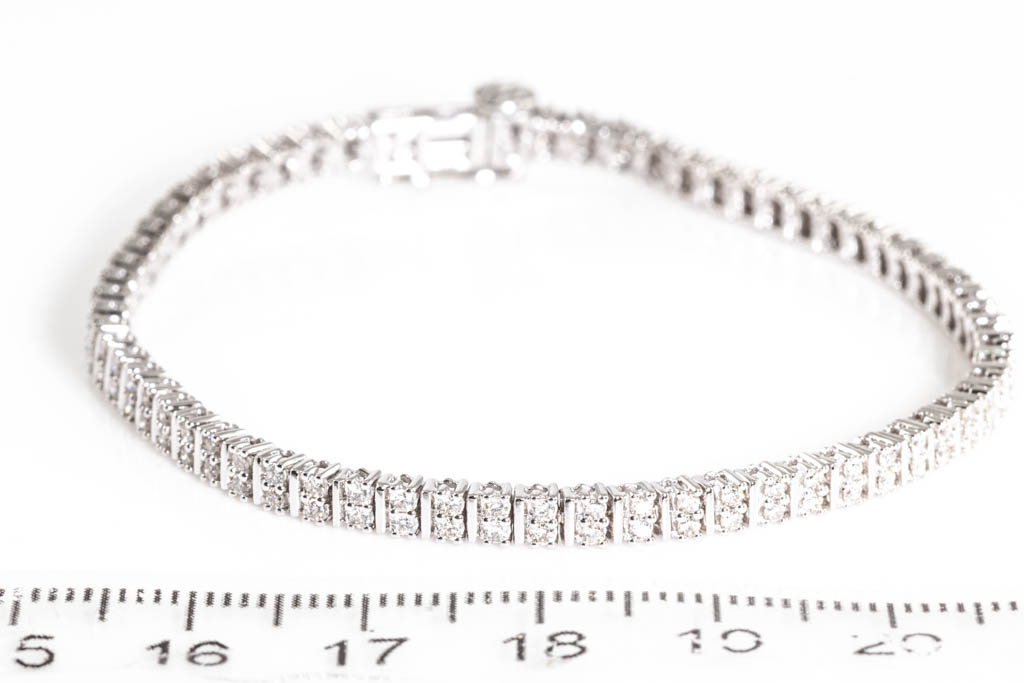 Diamond bracelet with 132 round diamonds totalling 1.40cts (Estimated grading: H-I SI). 14ct white gold. Length: 17.5cm. Weight: 9.4g. (New)