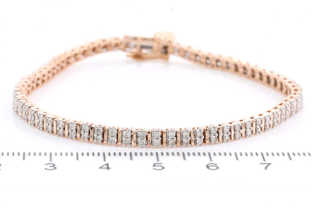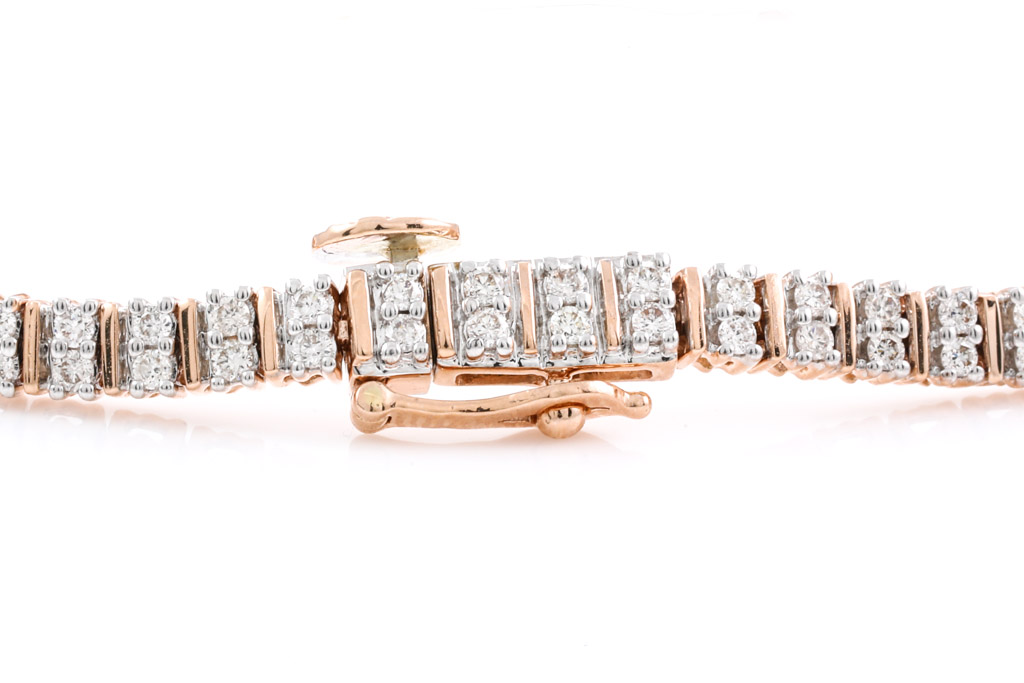 Diamond bracelet with 132 round diamonds totalling 1.40cts (Estimated grading: H SI). 14ct rose gold. Length: 17.5cm. Weight: 9.3g. (New)