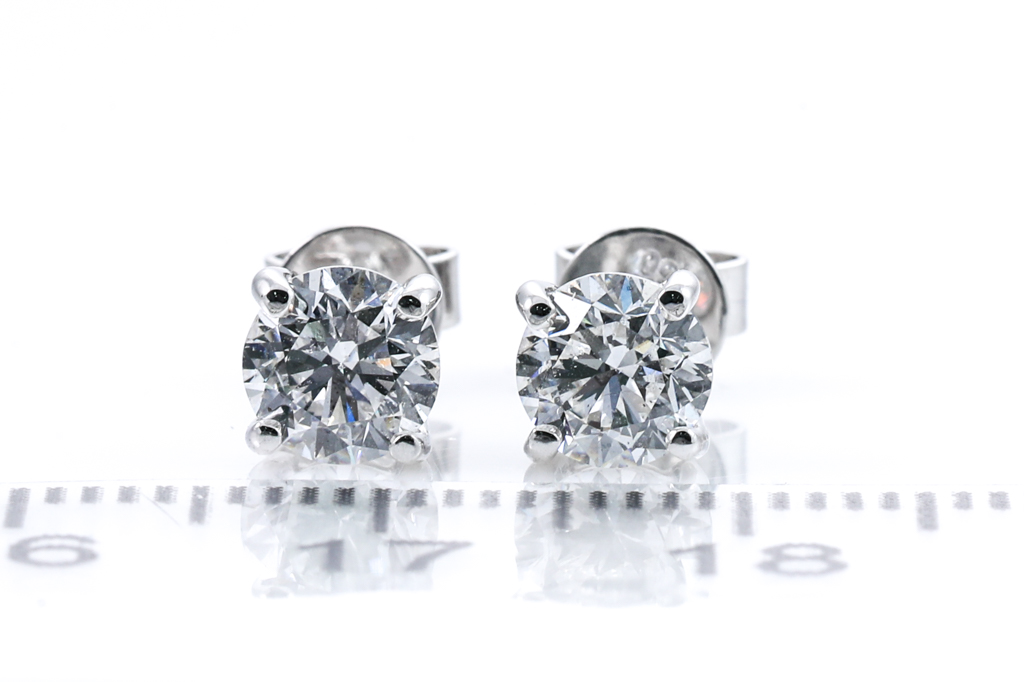 Diamond stud earrings with 2 round brilliant cut Diamonds totalling 1.40cts (both with GIA summary reports graded as D SI1 #5446986352, 1449604878