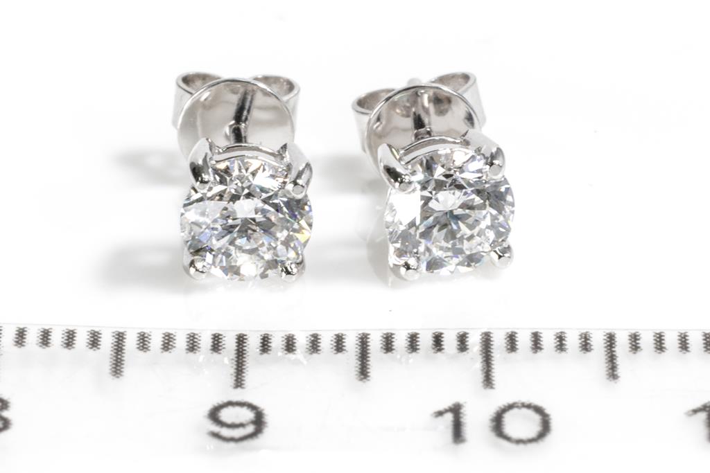 Diamond stud earrings with 2 round brilliant cut Diamonds totalling 1.40cts (both with GIA summary reports graded as D VS2 #2417612211, 7422029447) 18ct white gold. Weight: 1.8g (New)