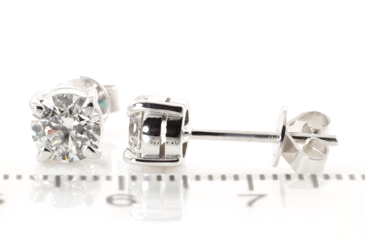 Diamond stud earrings with 2 round brilliant cut Diamonds totalling 1.43cts (both with GIA summary reports graded as D Internally Flawless #2376487854, 7386665288). 18ct white gold. Weight: 2.6g. (New)