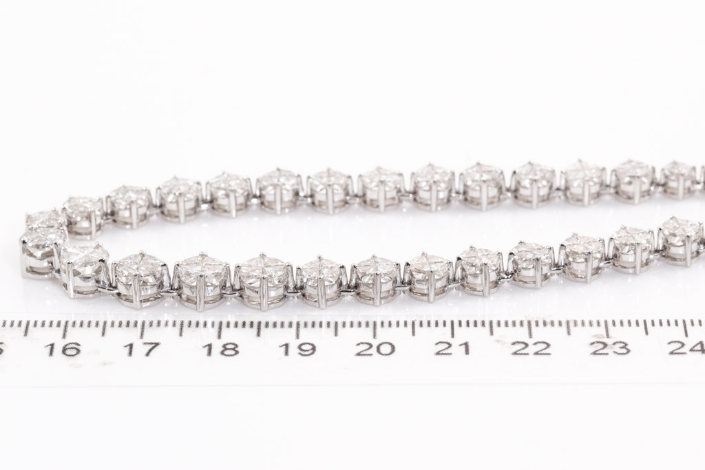 Diamond tennis necklace with invisible set fancy pie cut Diamonds totalling 14.64cts (Estimated grading: H-I SI-P1). 18ct white gold. Length: 40cm. Weight: 35.1g. With Certificate #416626. (Pre-owned)