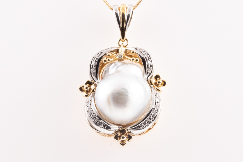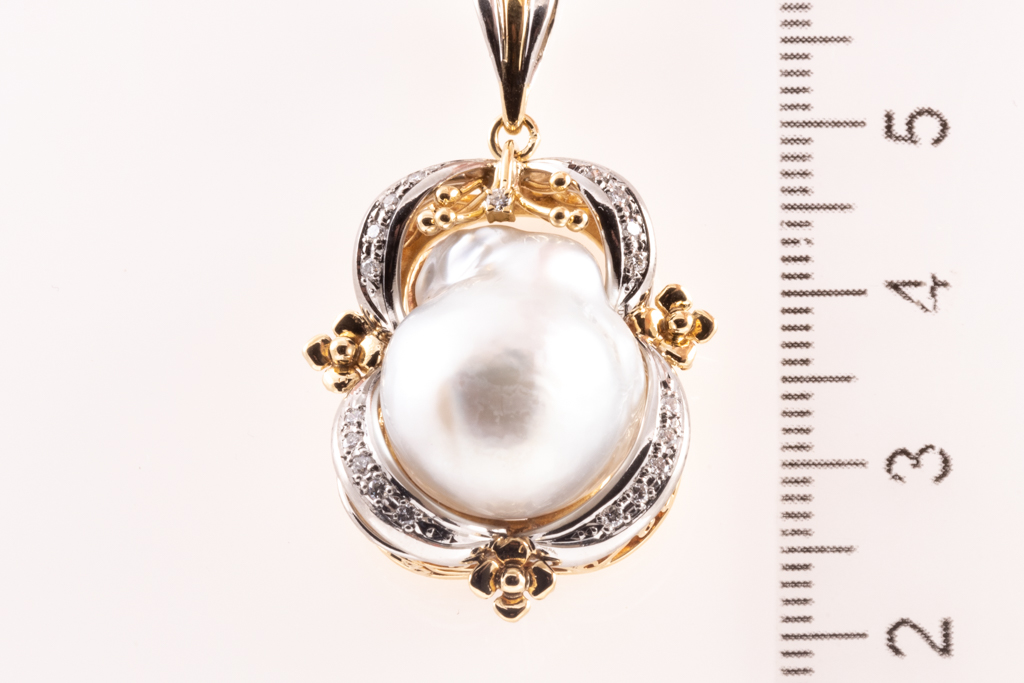 14.6mm Baroque Pearl and Diamond Pendant