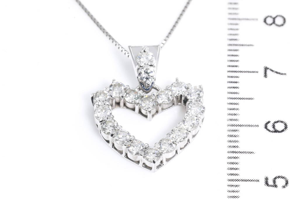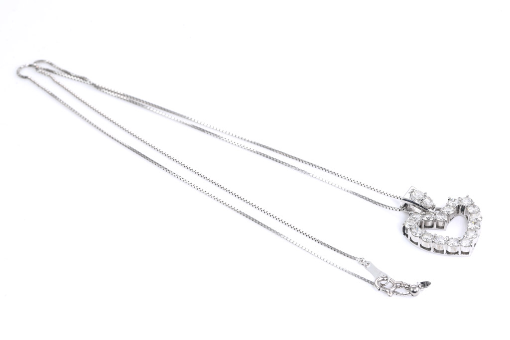 Diamond Heart Designed Pendant with round Diamonds totalling 1.48cts (Estimated grading: H-J SI-P1) Platinum with 18ct white gold adjustable 44cm chain. Weight: 6.7g. (Pre-owned)