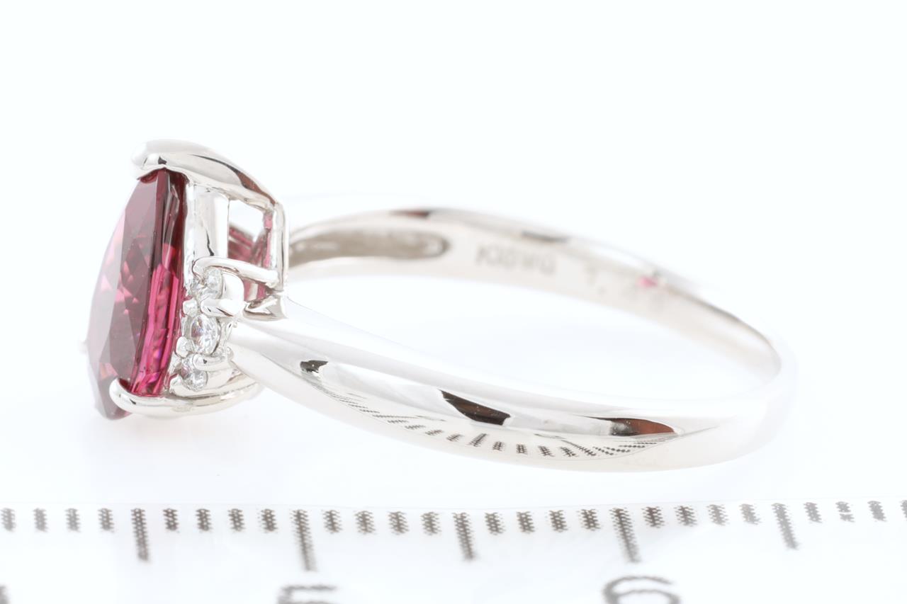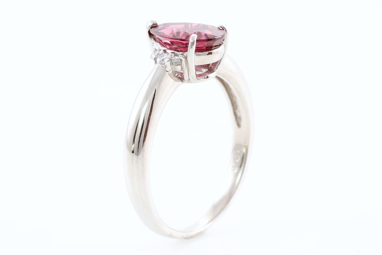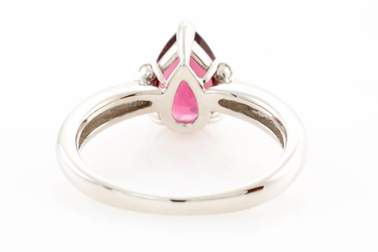 Garnet and Diamond ring with pear shape Garnet of 1.48ct and Diamonds totalling 0.06cts. 18ct white gold. Ring size: K1/2. Weight: 3.9g (Pre-owned)