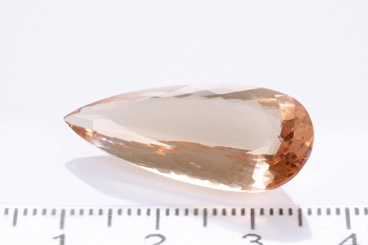 A loose Pear Shape Morganite of 14.90ct. Approximate size: 30mm x 12.6mm x 7mm (New)