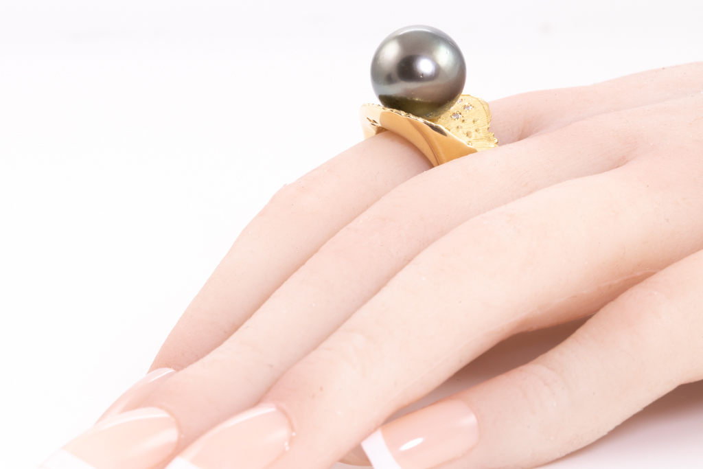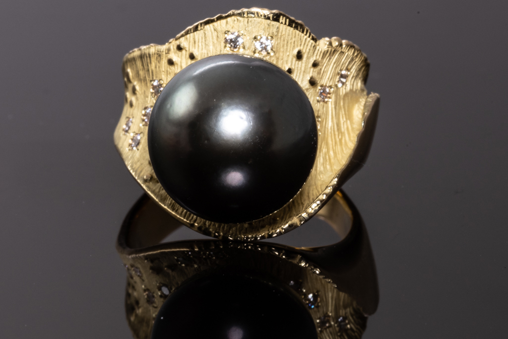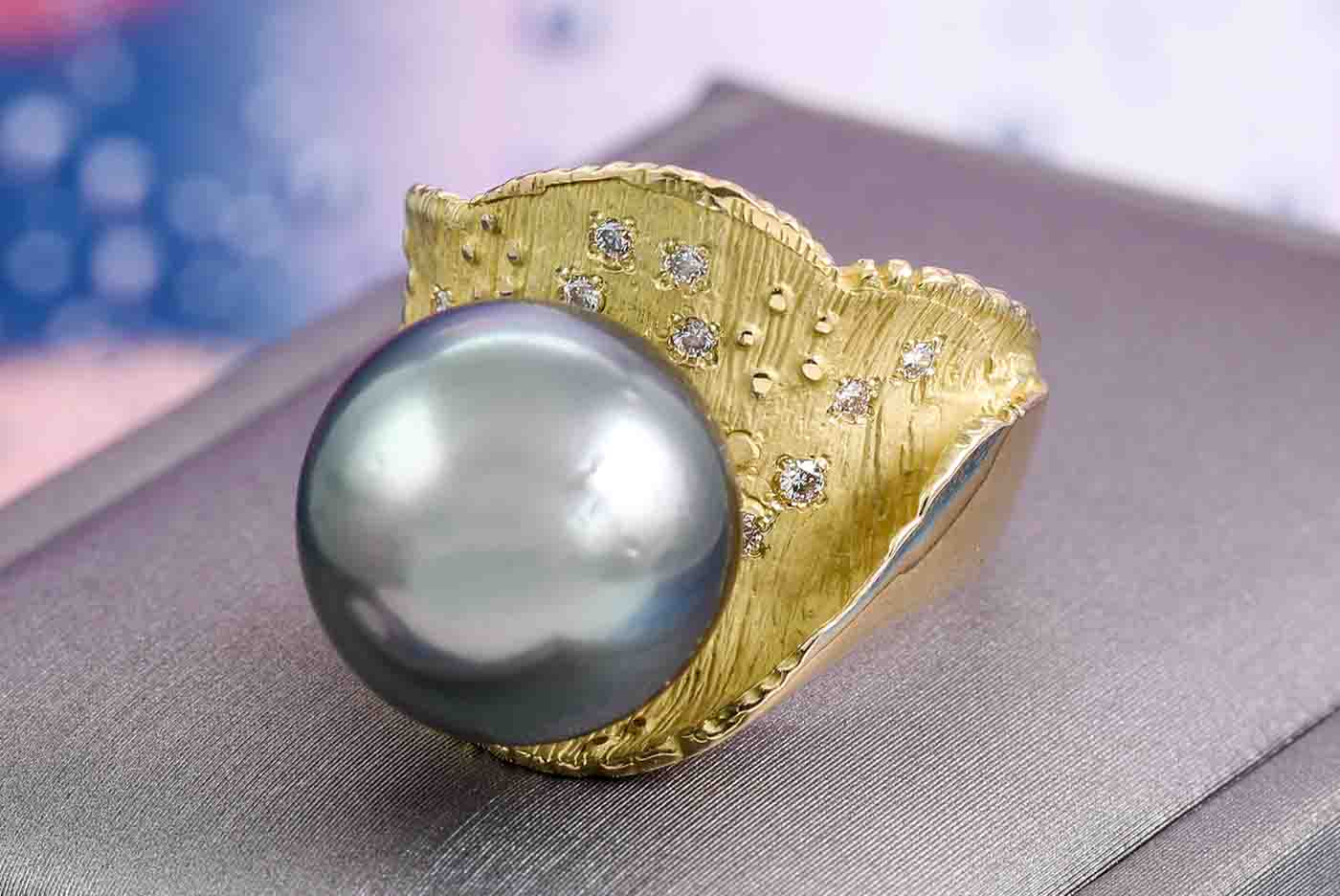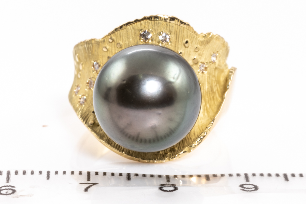 14mm Tahitian Pearl & Diamond Ring