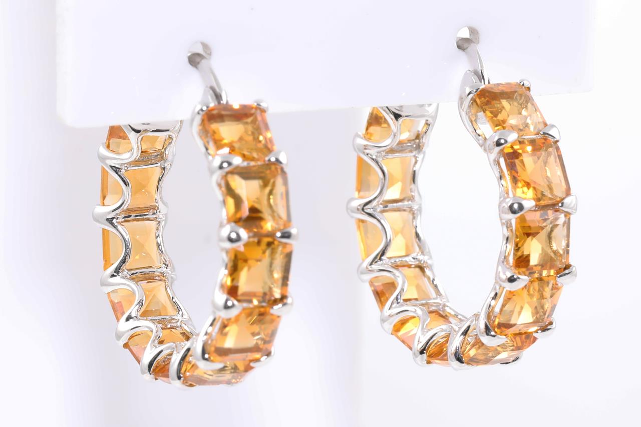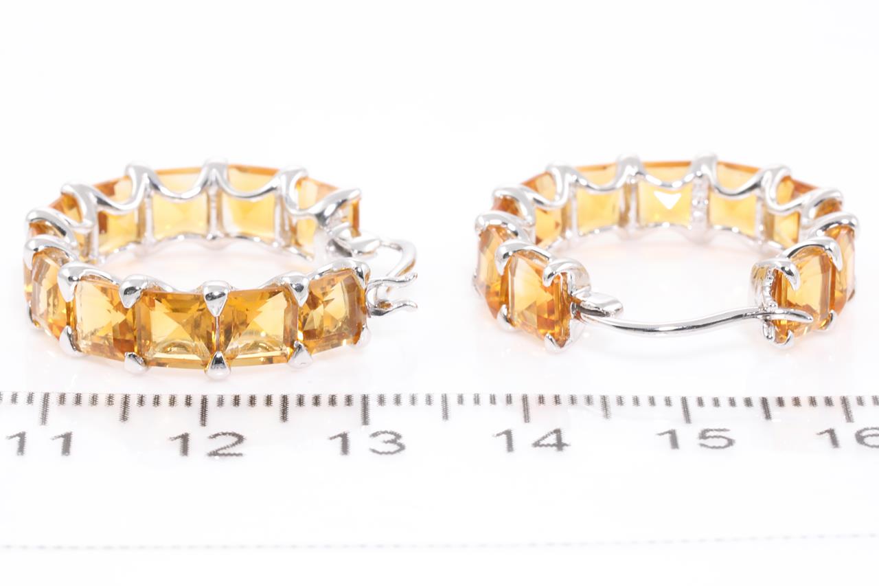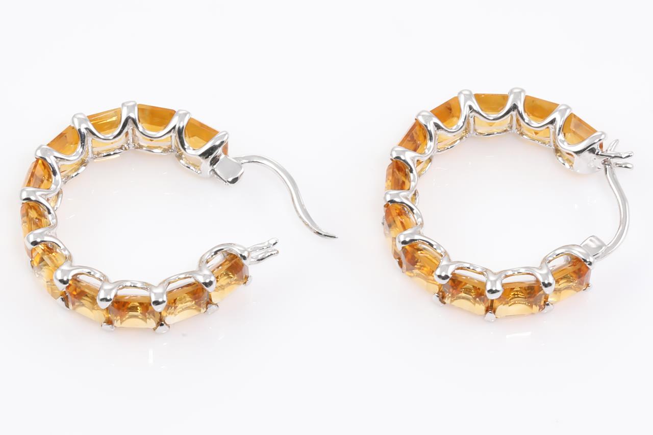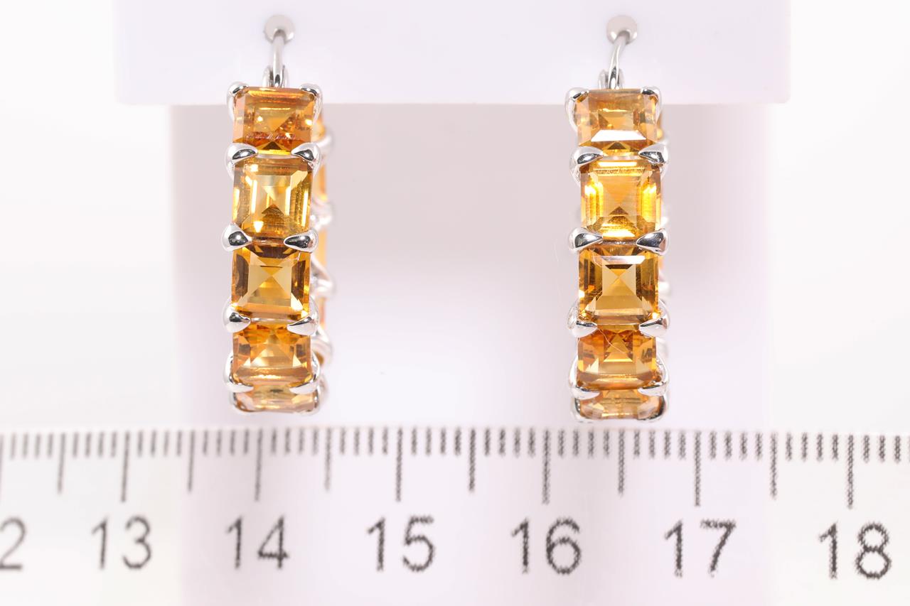 Citrine Earrings with 22 square cut Citrines totalling approximately 15.00ct. 14ct white gold. Weight 8g. (Pre-owned)