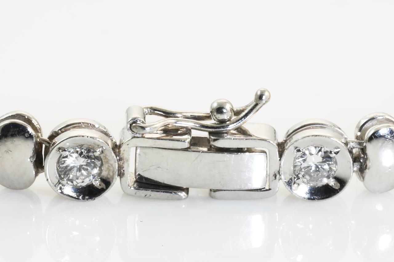 Diamond bracelet with round Diamonds totalling 1.50cts (Estimated grading: G-H SI). Platinum. Length: 18cm. Weight: 15.6g. (Pre-owned)