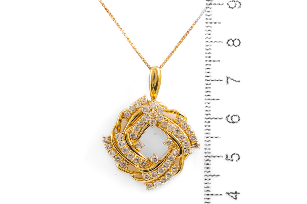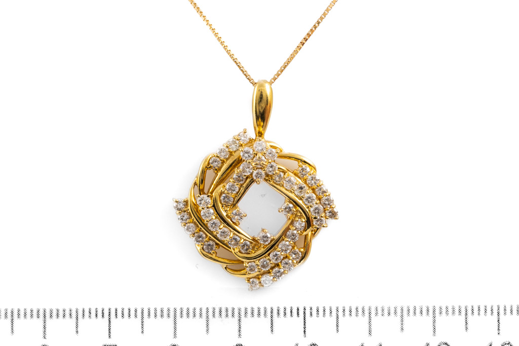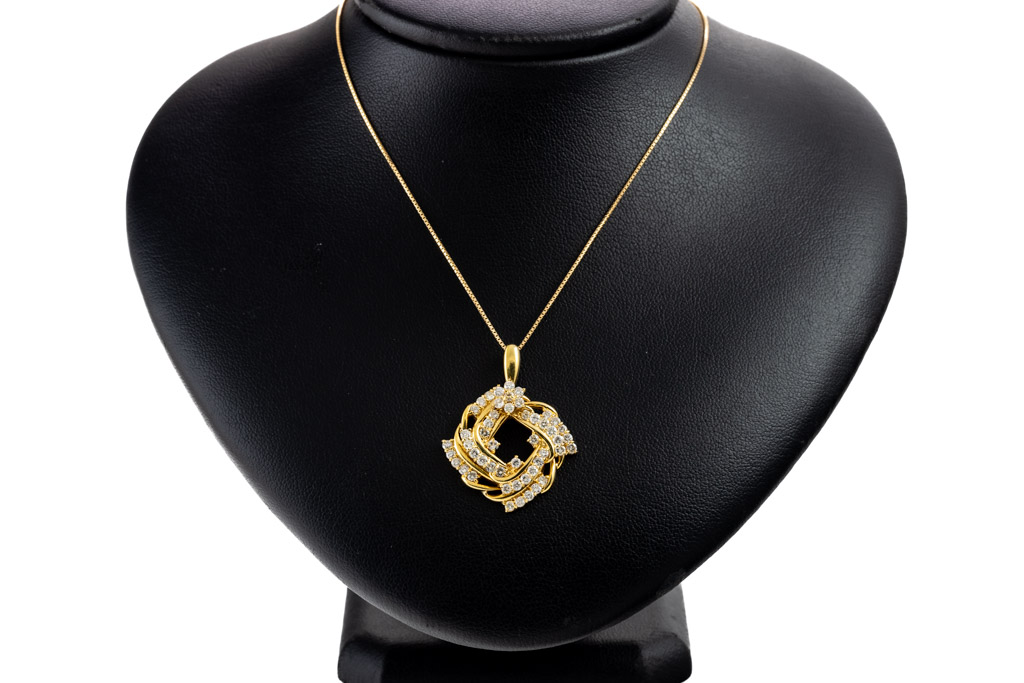 Diamond rotating dress pendant with round Diamonds totalling 1.50cts (Estimated grading: H-I P1). 18ct yellow gold with 45cm 18ct yellow gold adjustable chain. Weight: 11.1g (Pre-owned)