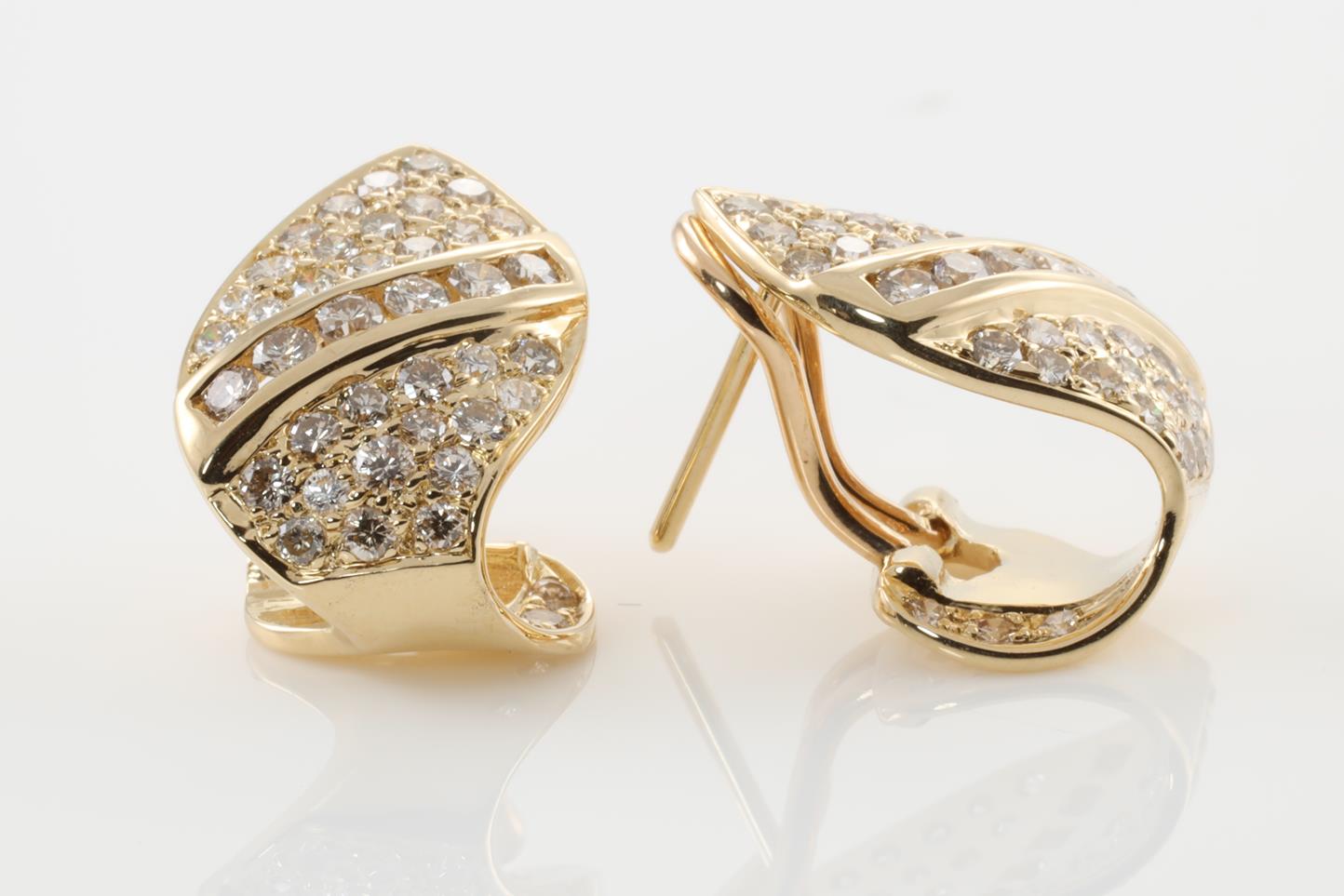 Diamond earrings with round Diamonds totalling 1.50cts (Estimated grading: J-K VS). 18ct yellow gold. Weight: 6.1g. (Pre-owned)