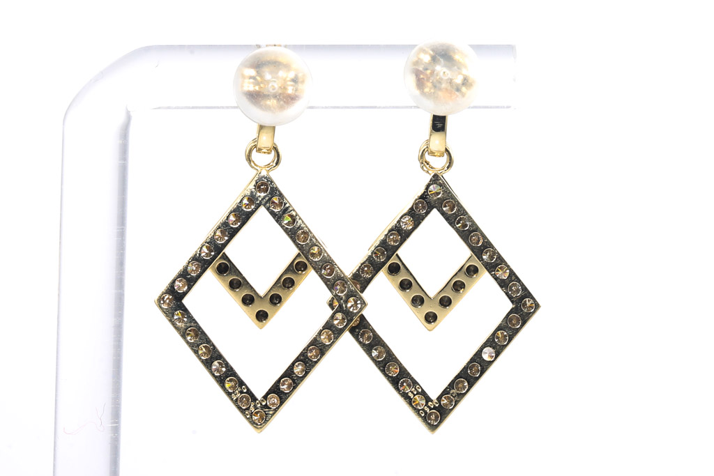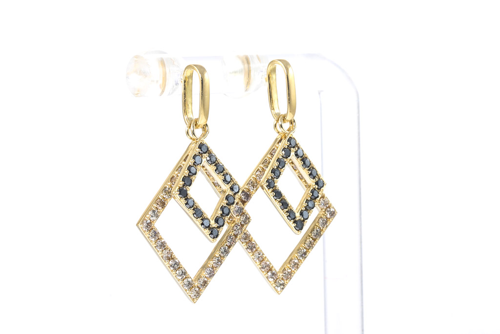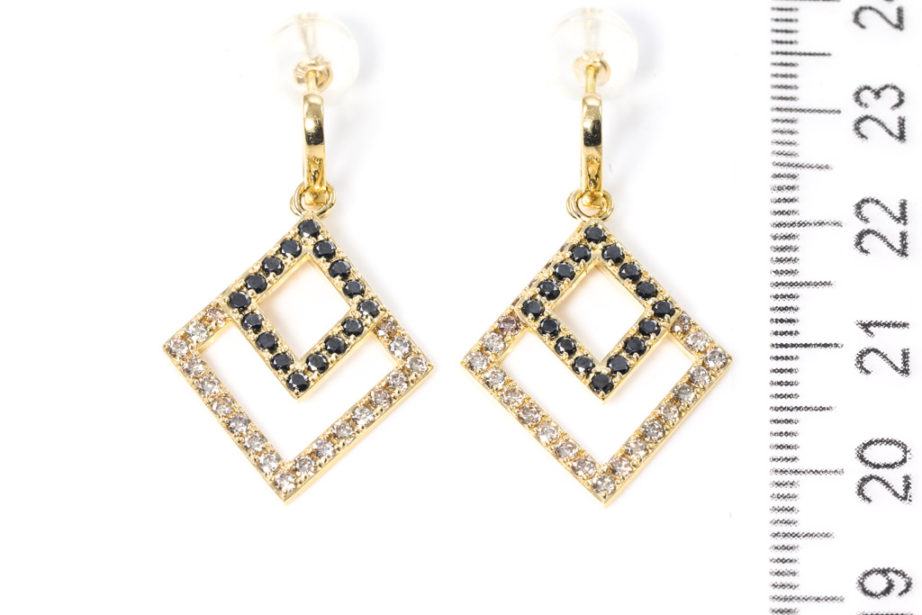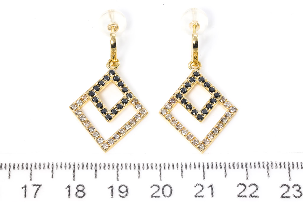 Diamond earrings with round Black Diamonds totalling 0.50cts and round Diamonds totalling 1.00cts (Estimated grading: J-K SI). 18ct yellow gold with 18ct yellow gold & silicon backs. Weight: 5.1g. (Pre-owned)