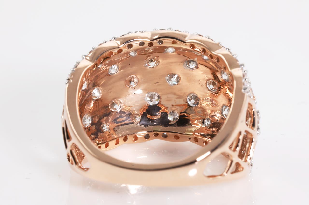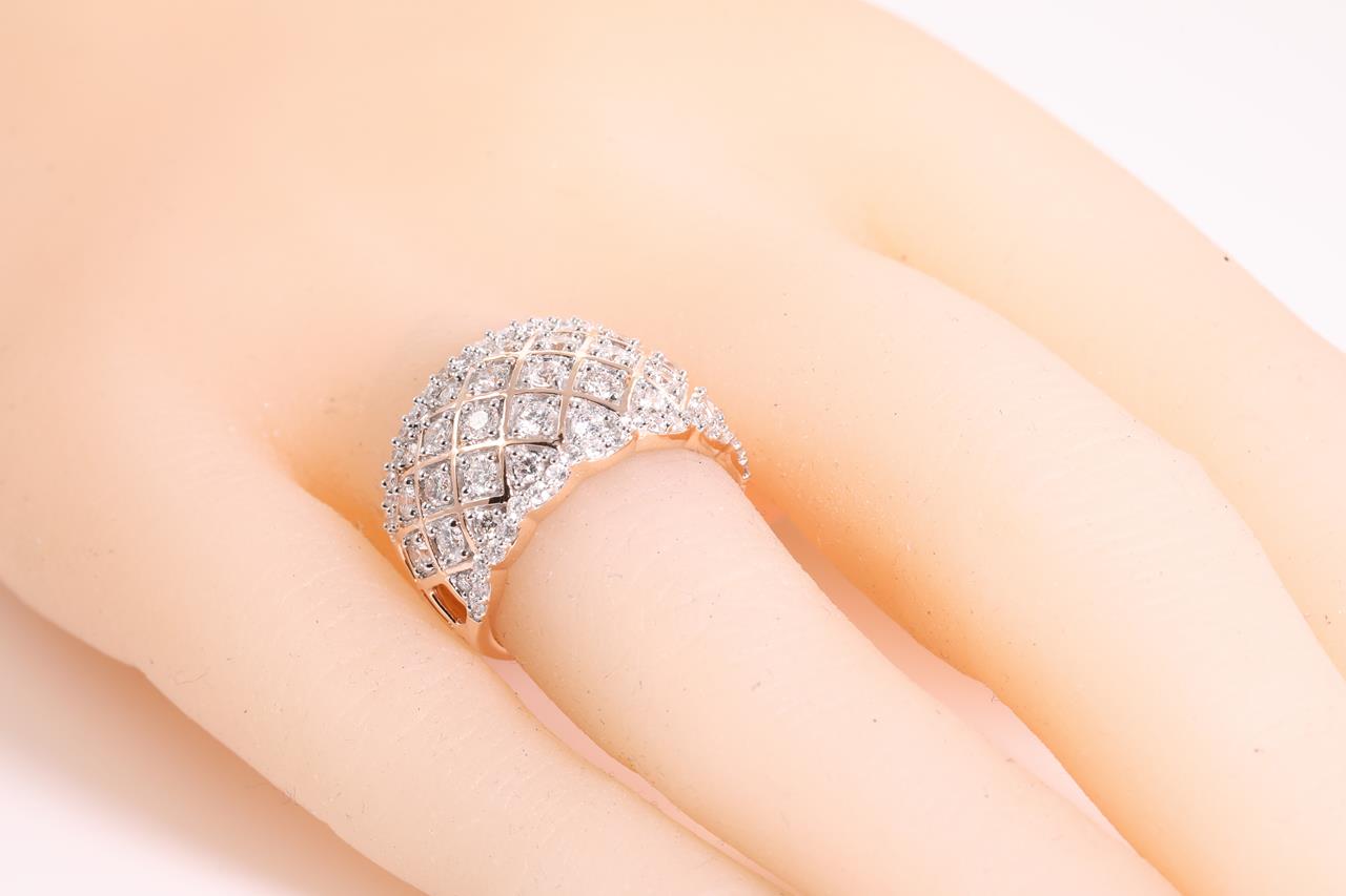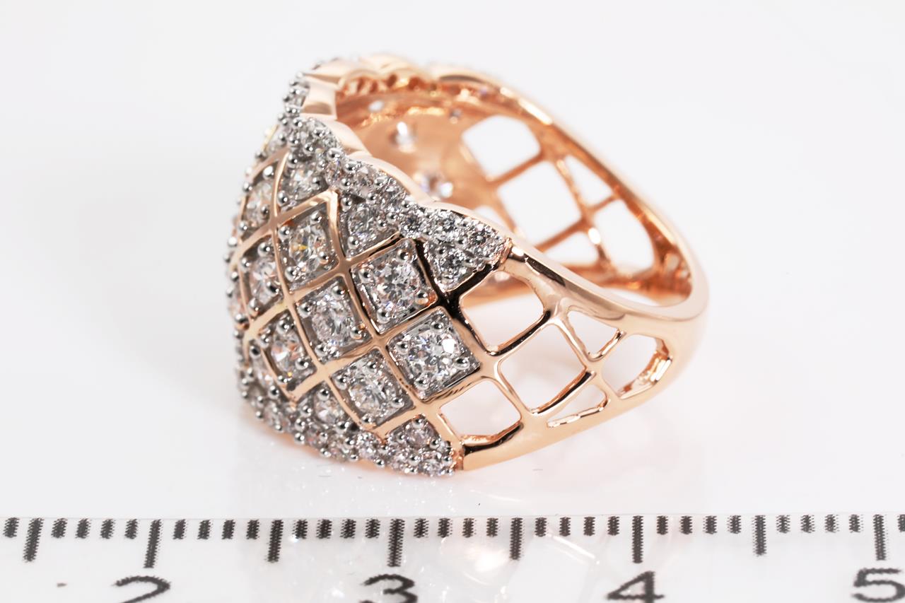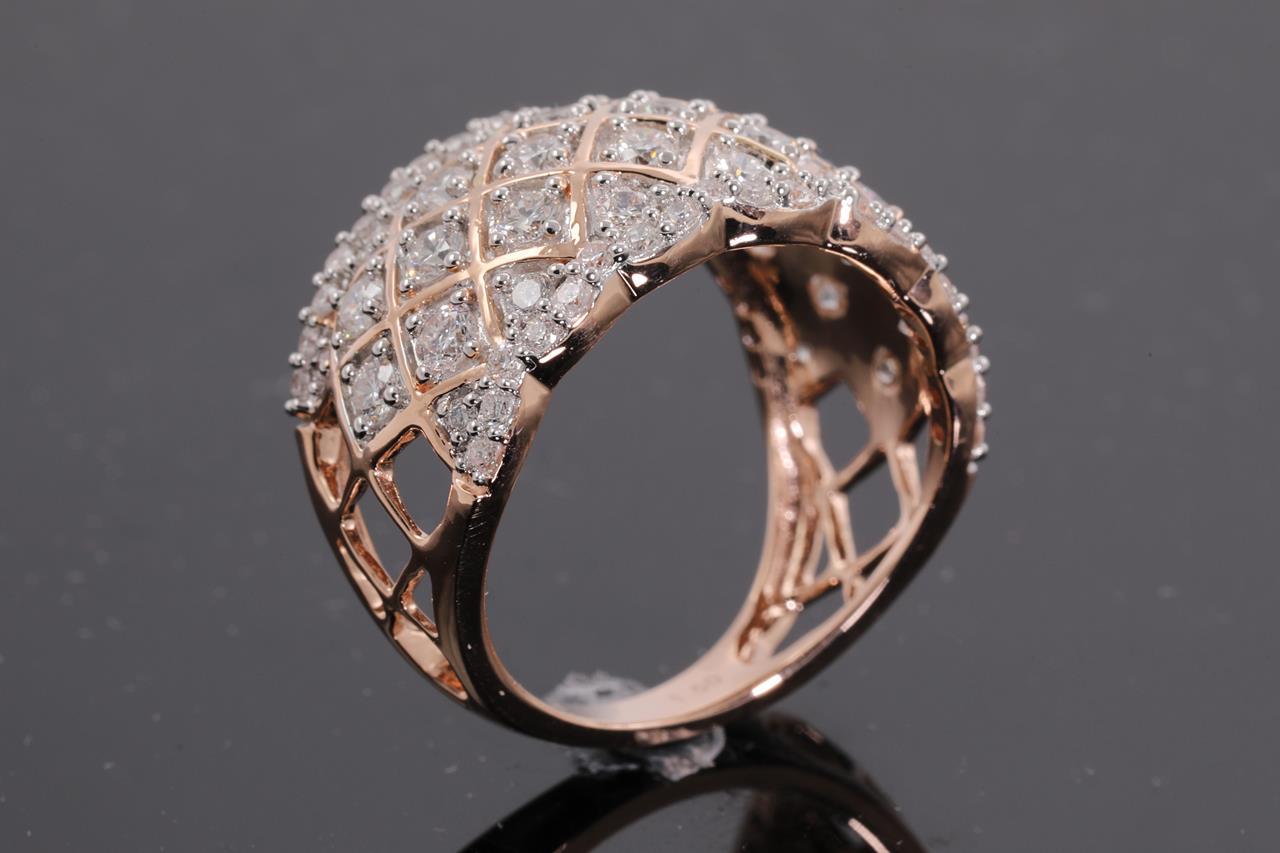 Diamond dress ring with round Diamonds totalling 1.50cts (Estimated grading: H SI). 14ct white and rose gold. Ring size L - cannot be resized up, down with ring clip. Weight: 5.6g (New).