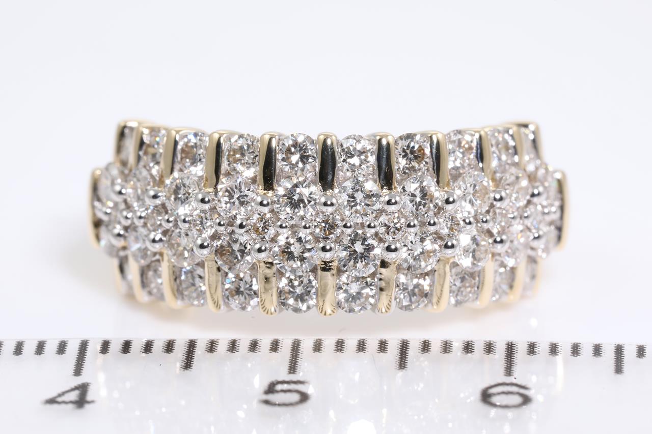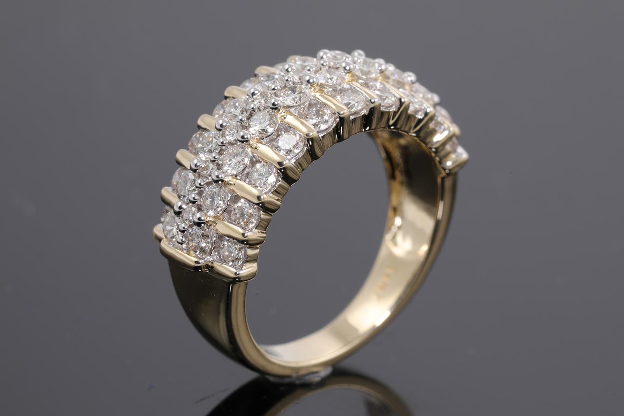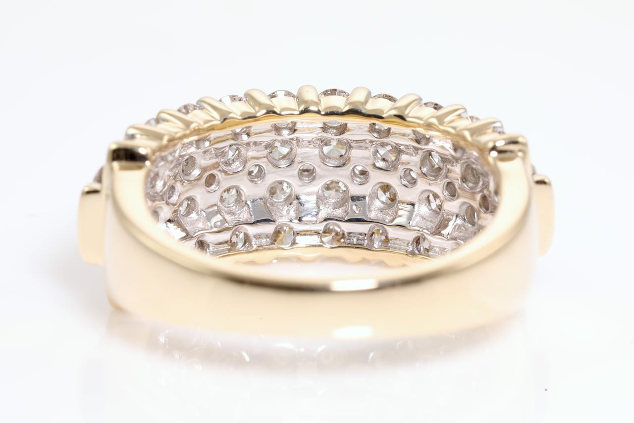 Diamond dress ring with round Diamonds totalling 1.50cts (Estimated Grading: H SI). 14ct yellow gold and white gold. Ring size M. Weight: 5.8g (New)