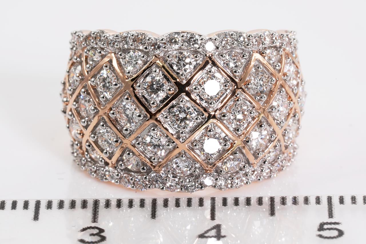 Diamond dress ring with round Diamonds totalling 1.50cts (Estimated grading: H SI). 14ct white and rose gold. Ring size L - cannot be resized up, down with ring clip. Weight: 5.6g (New).