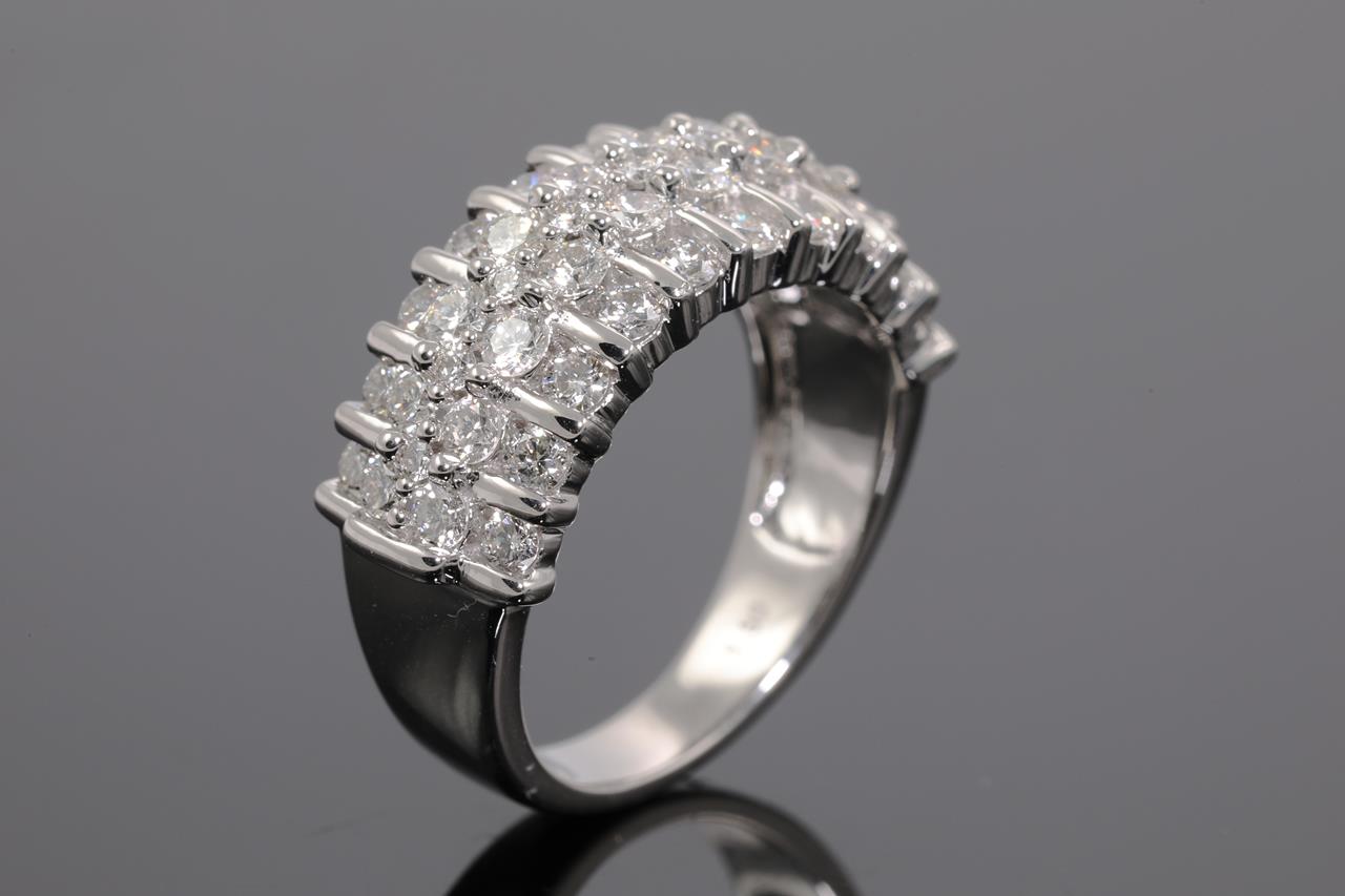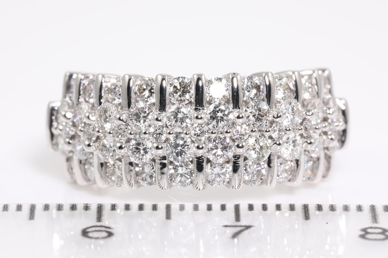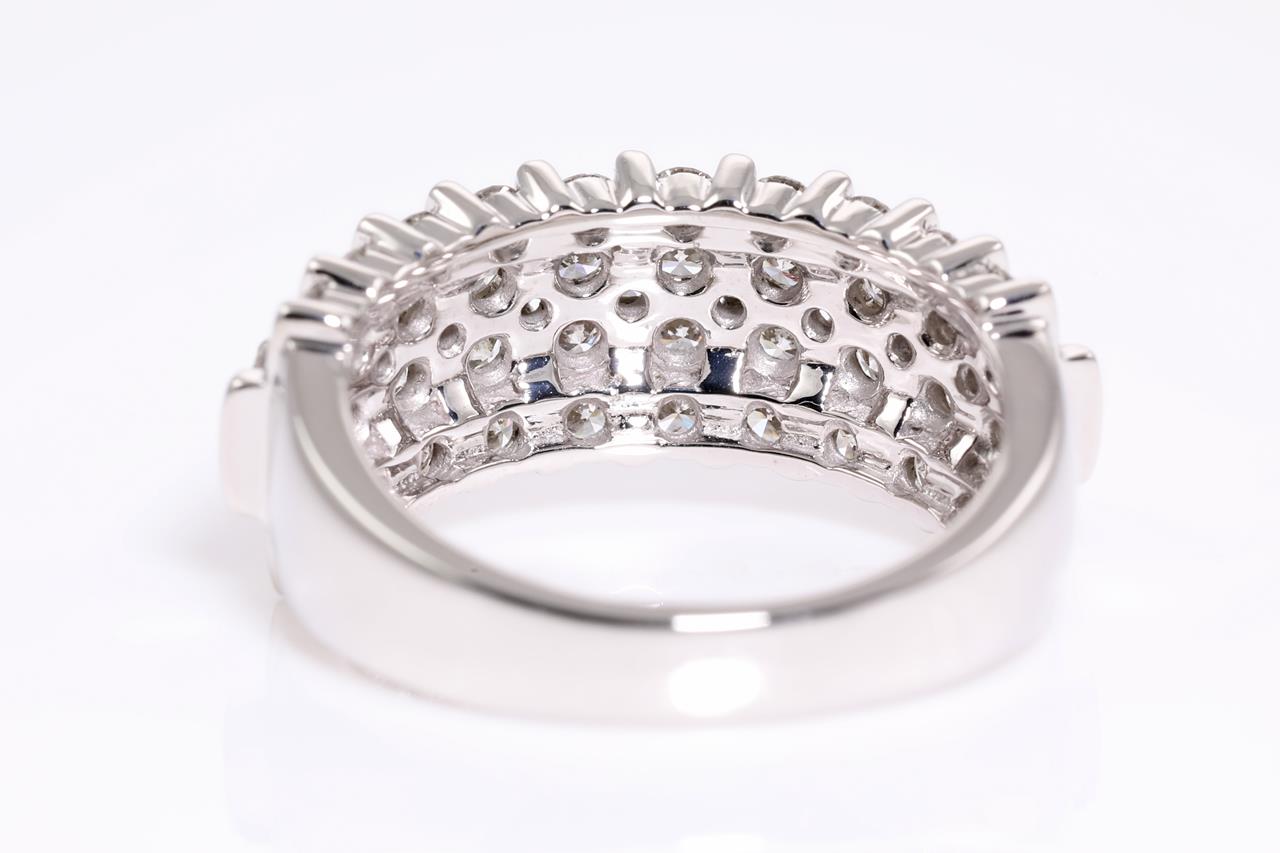Diamond dress ring with round Diamonds totalling 1.50cts (Estimated Grading: H SI). 14ct white gold. Ring size M. Weight: 6.0g (New)