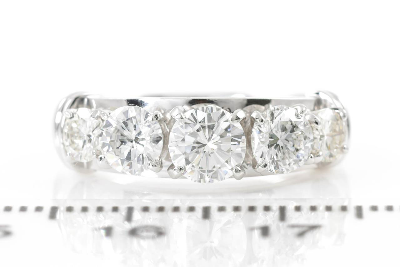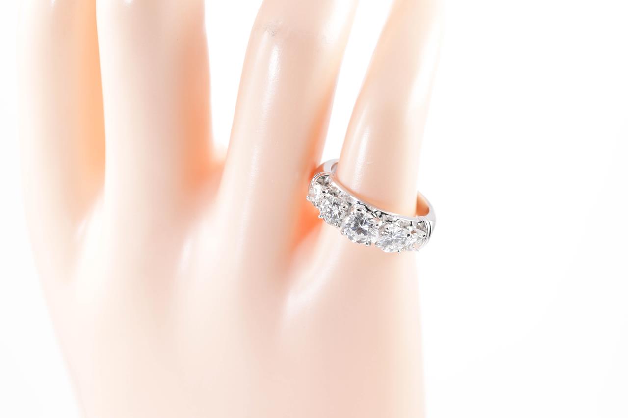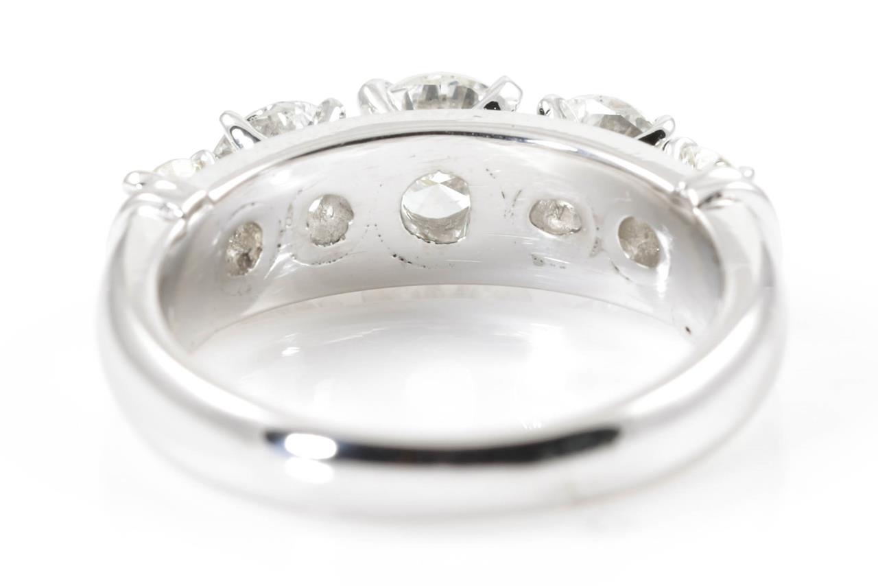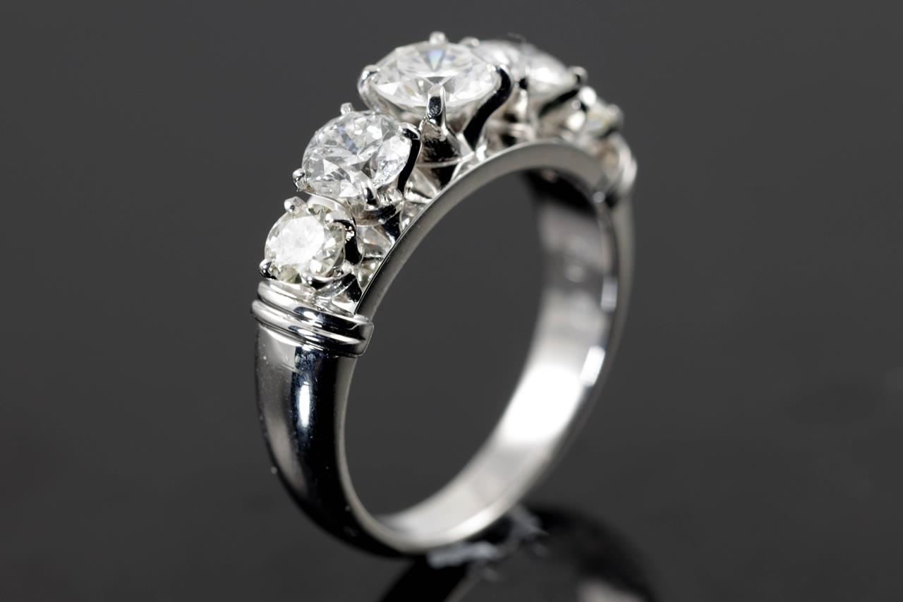 Diamond Ring with graduated 5 round brilliant cut Diamonds totalling 1.50cts (Estimated grading: H-J SI-P1). Platinum. Ring size L. Weight: 7.9g (Pre-owned)