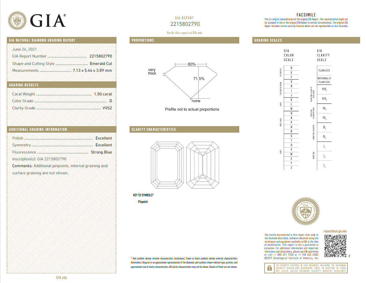 A loose Emerald cut Diamond of 1.50ct (With GIA report graded as D VVS2 #2215802790). (New)