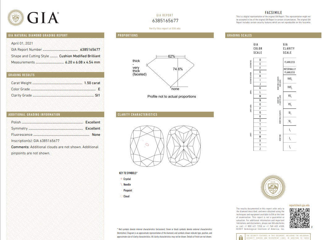 A loose cushion cut Diamond of 1.50ct (With GIA report graded as E SI1 #6385165677). (New)