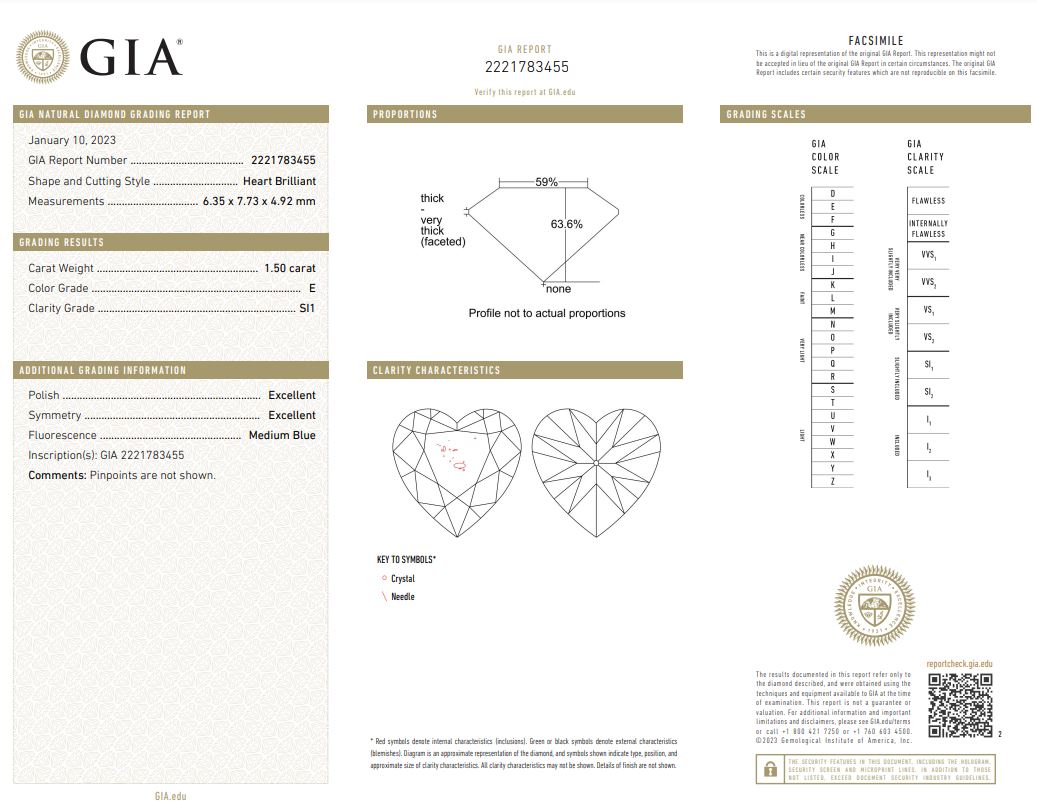 A loose heart shaped Diamond of 1.50ct (with GIA report graded as E SI1 #2221783455