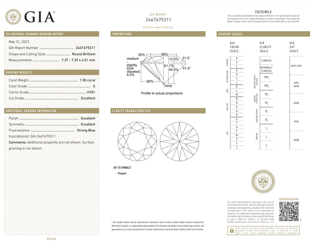 A loose round brilliant cut Diamond of 1.50ct (With GIA report graded as E VVS1 #2467675311